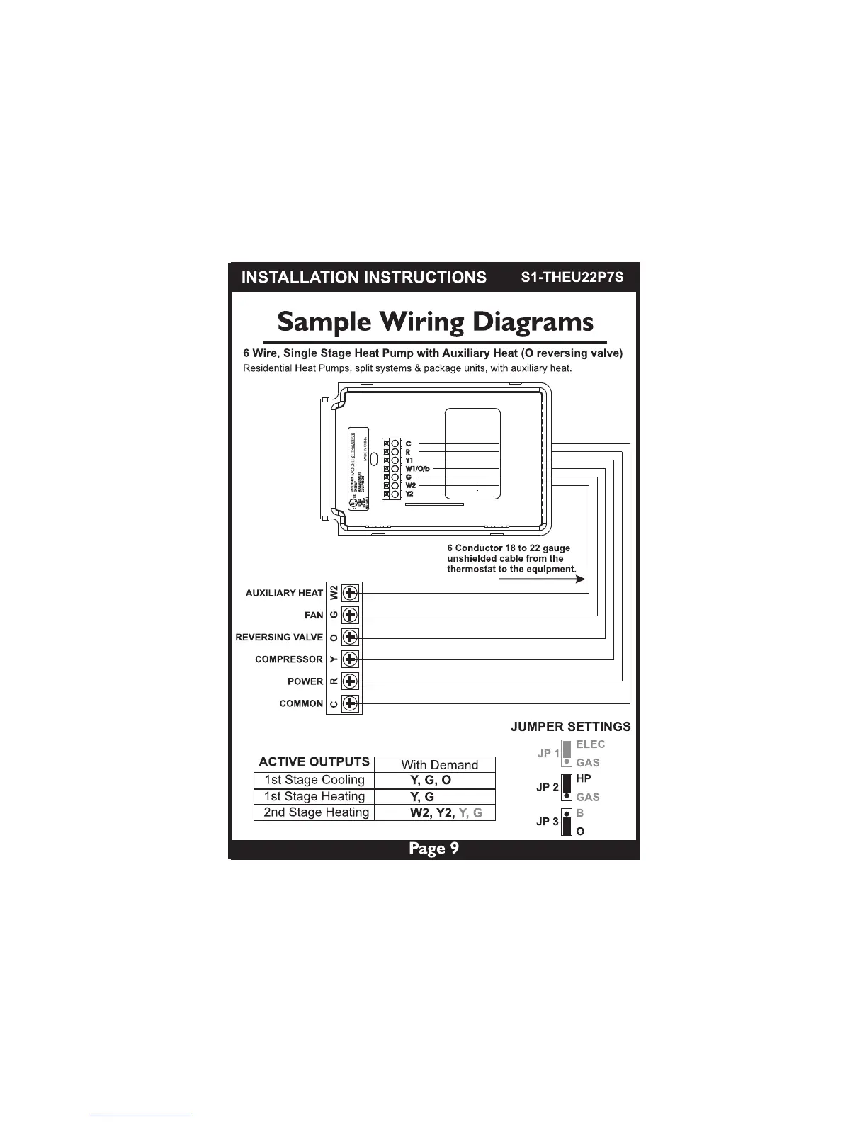 1 Source S1-THEU22P7S - 6 Wire Single Stage Heat Pump with Auxiliary Heat Wiring Diagram
