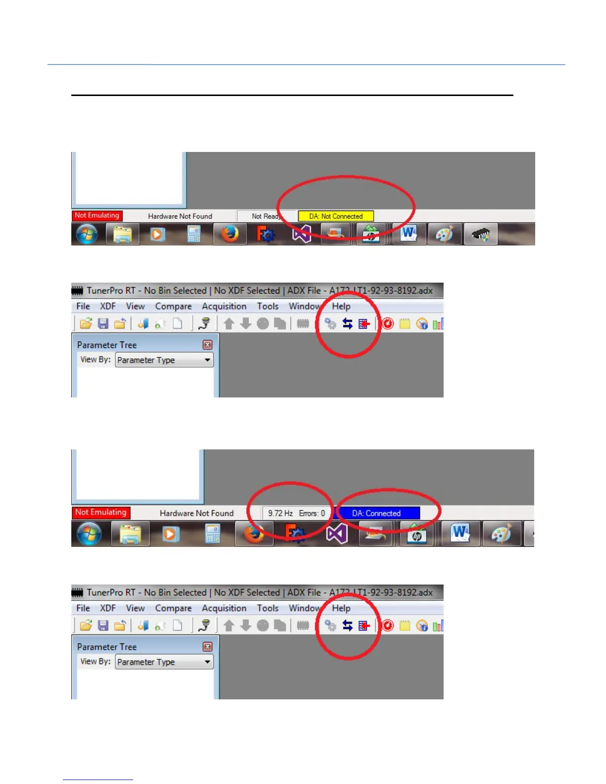 At the bottom of the screen TunerPro RT should indiciate that it is connecting, then connected.