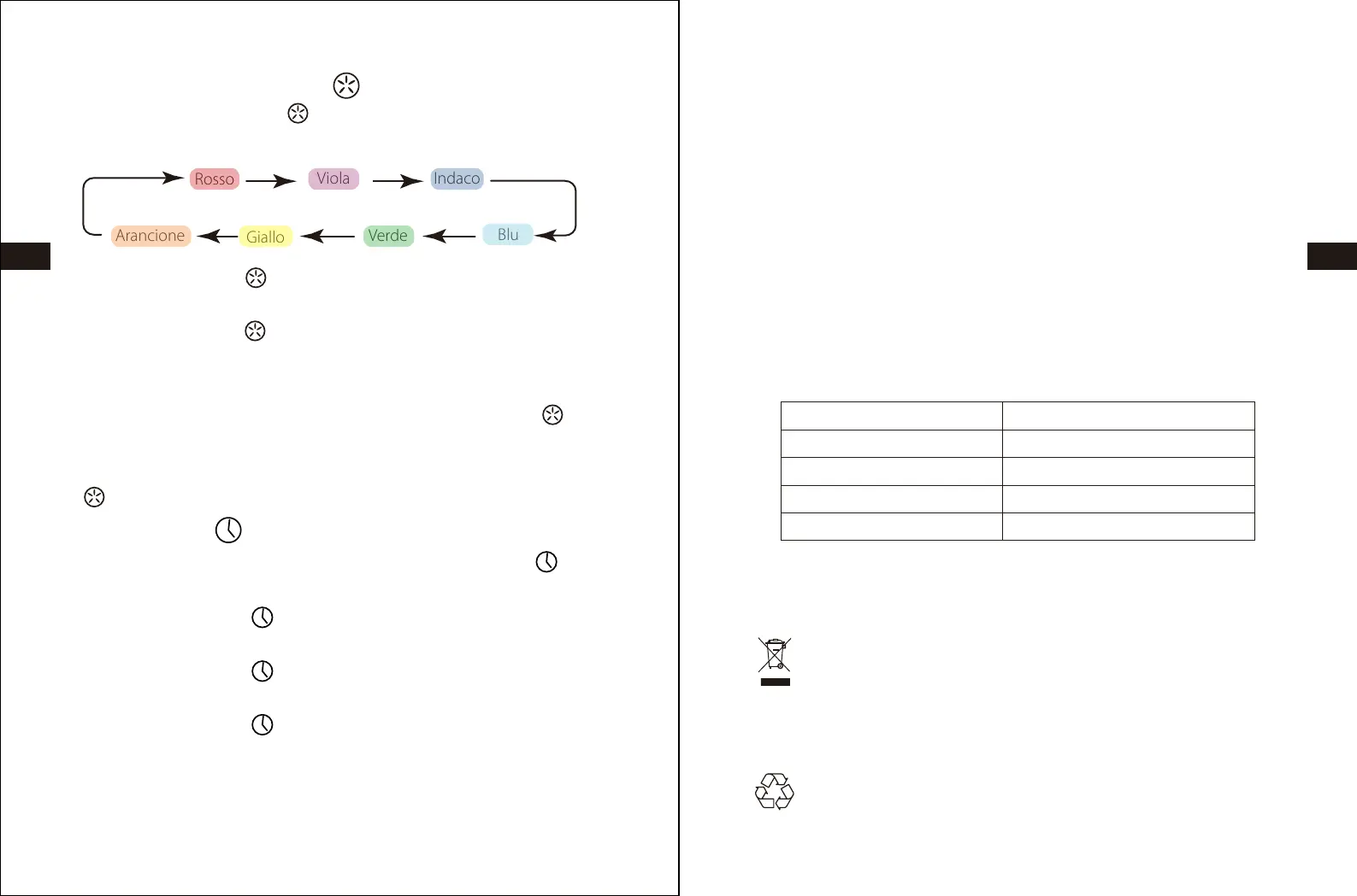 4. Dopo che si sono visti tutti i colori, la pressione successiva del tasto speg-