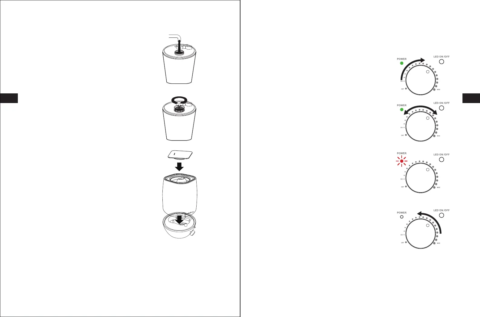 2. Regolare il livello di umidificazione ruotando