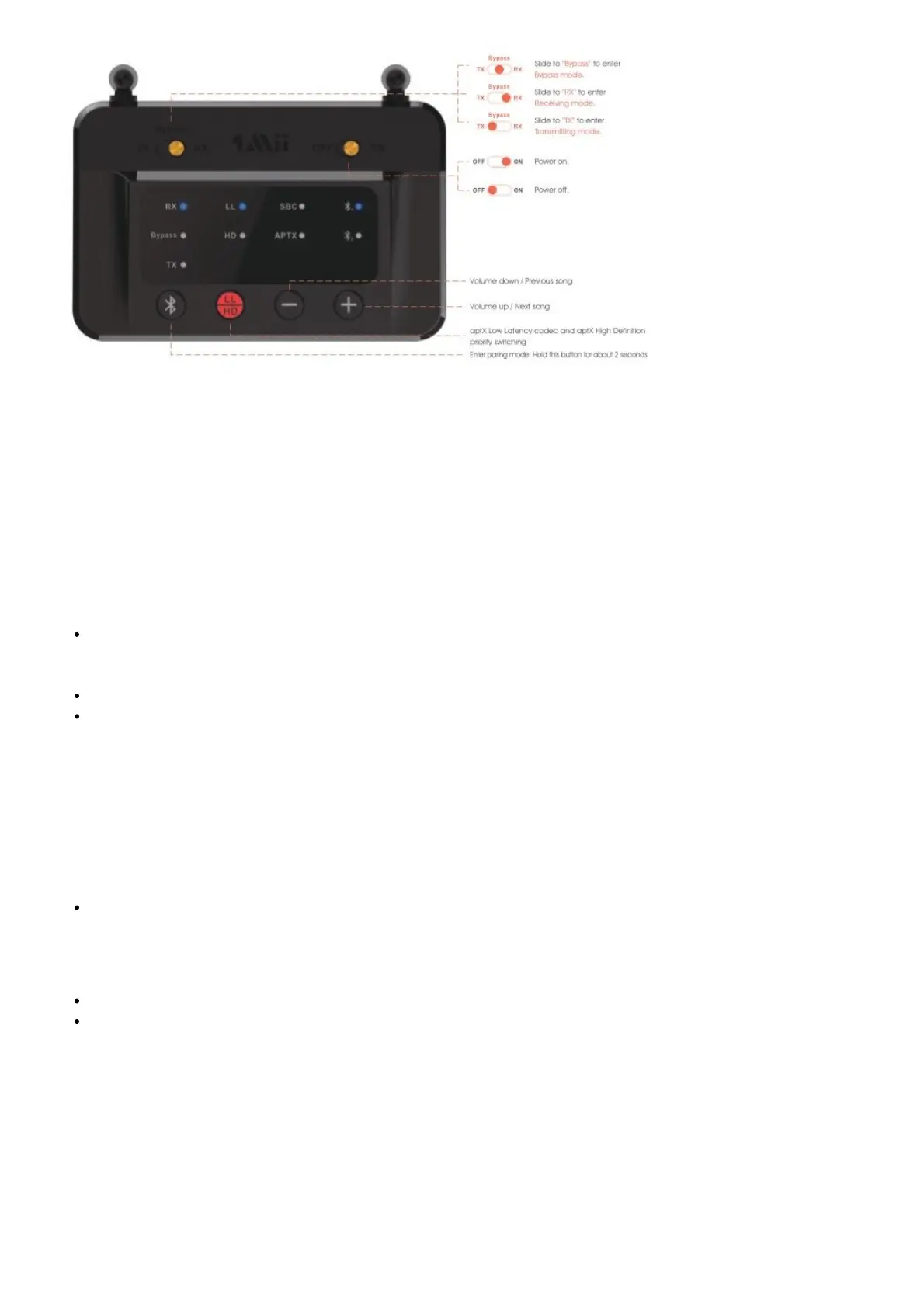 1. Connect audio source (TV, DVD etc.) to B03 Pro “From TV” port with the audio cables provided (optical or AUX/