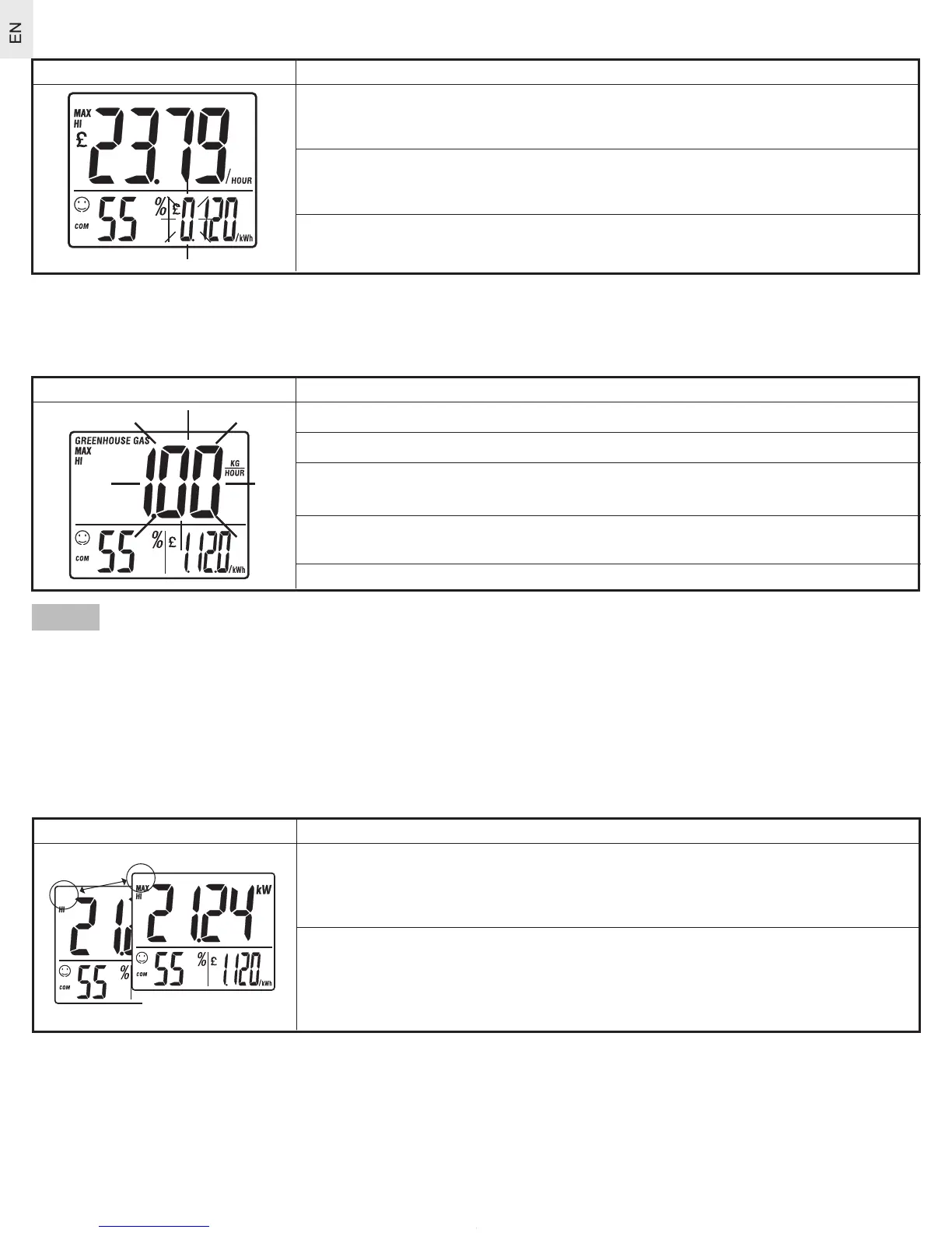 . The Greenhouse Gas emission unit blinks. Use the arrow key