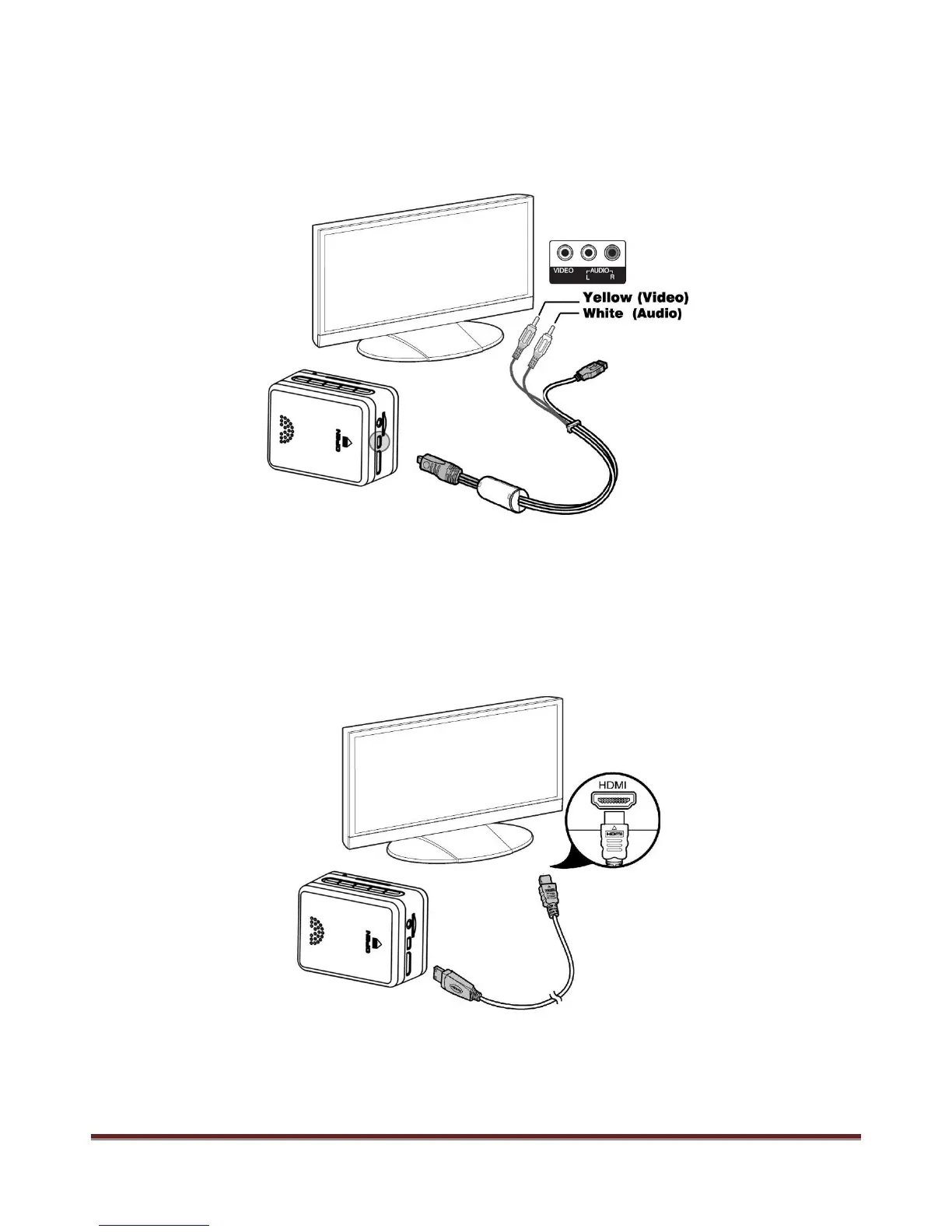 Find out the USB-RCA cable in standard accessories, USB side insert to camera, RCA side insert to TV
