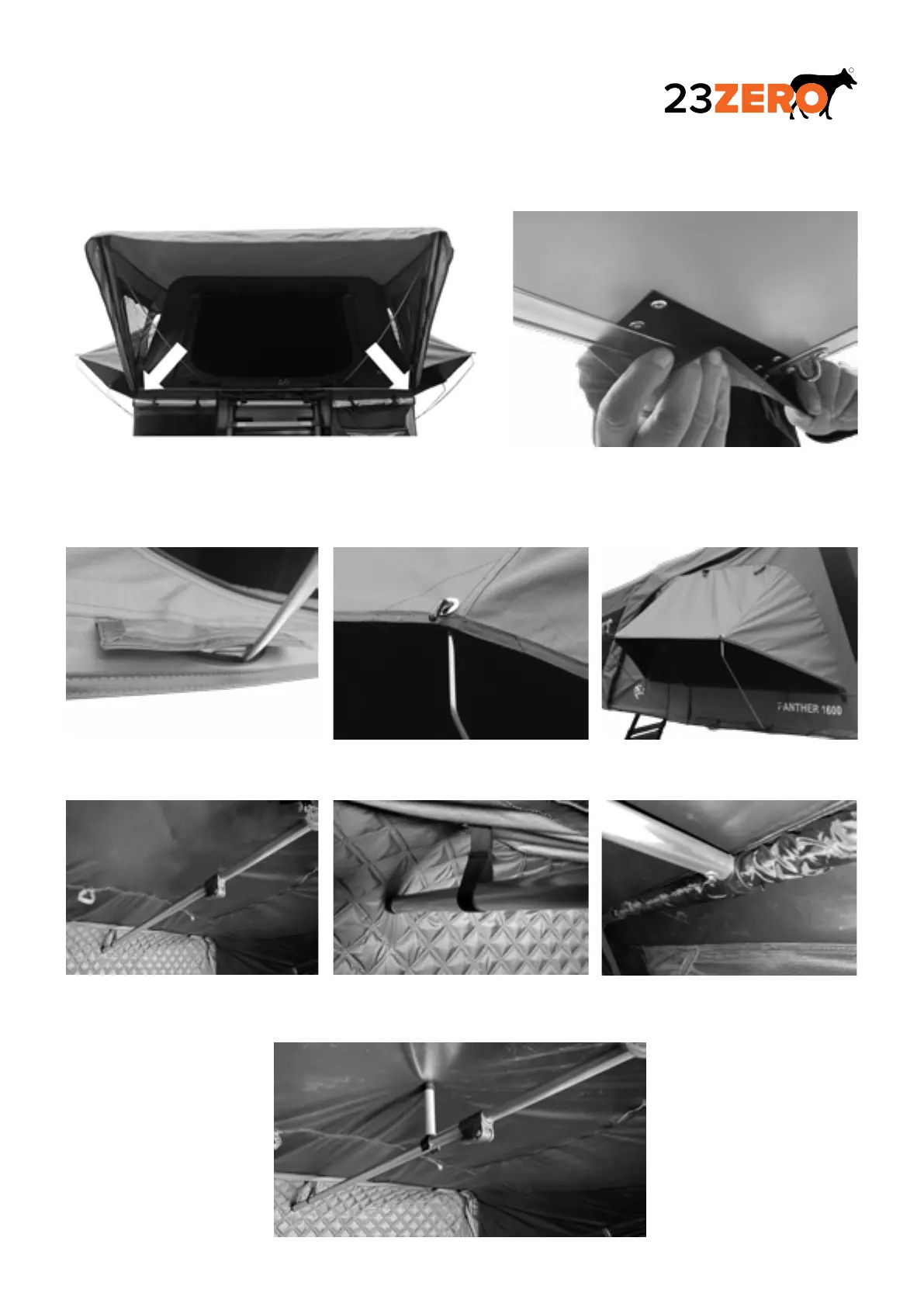 10. Insert Safety pole. Feed through webbing loop (lid end) and hook onto body pole over door.