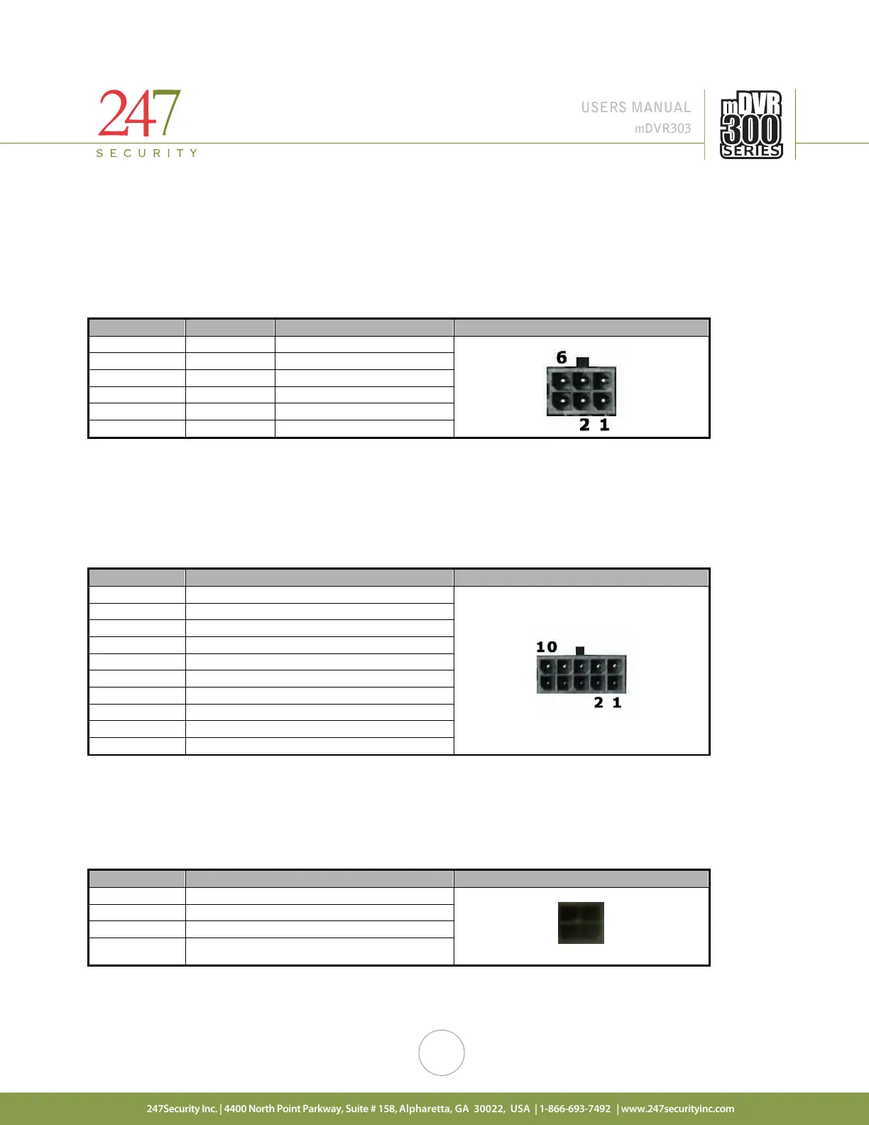 The mDVR303 supports a maximum of 3 cameras. These Micro-fit connectors are used to connect the