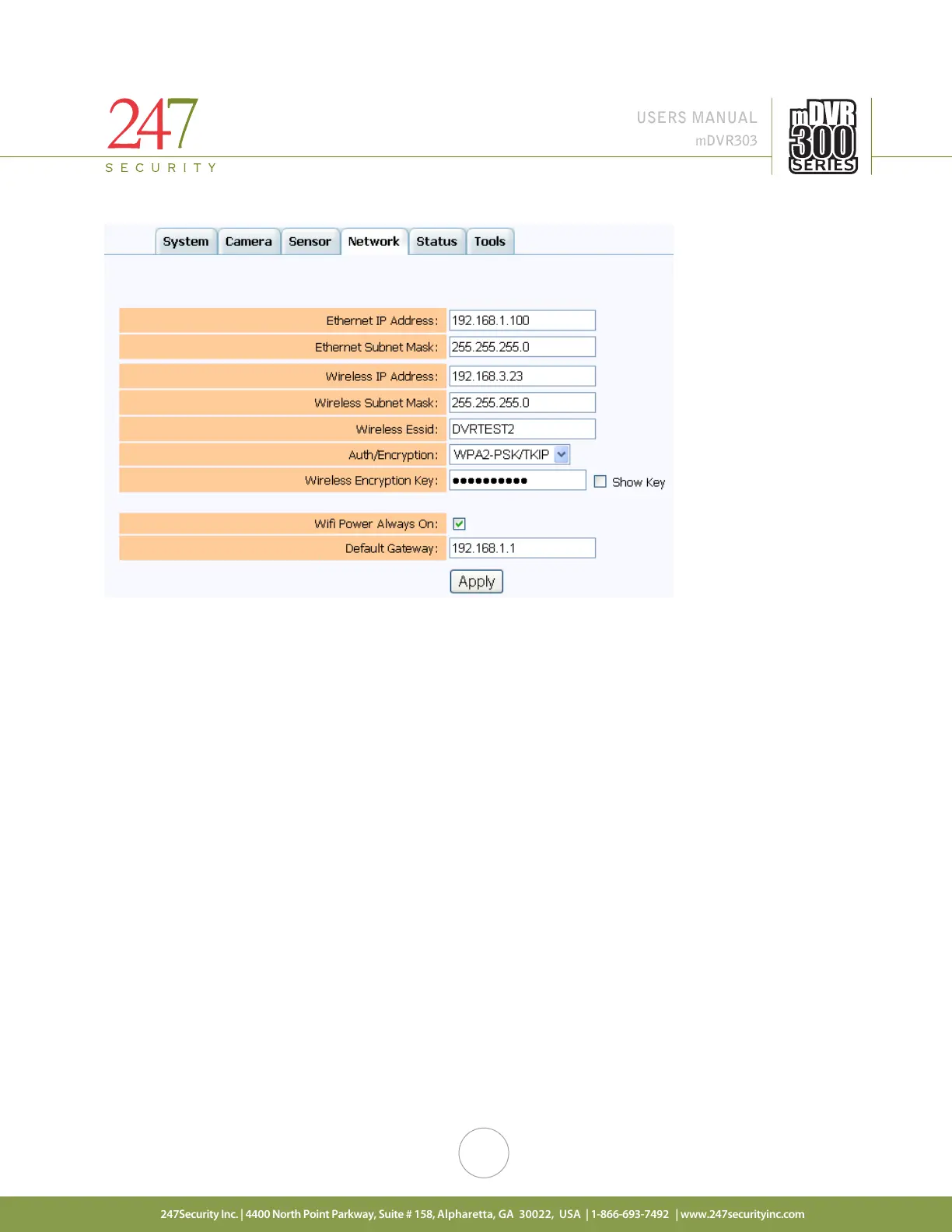 247Security mDVR303 - Network Menu