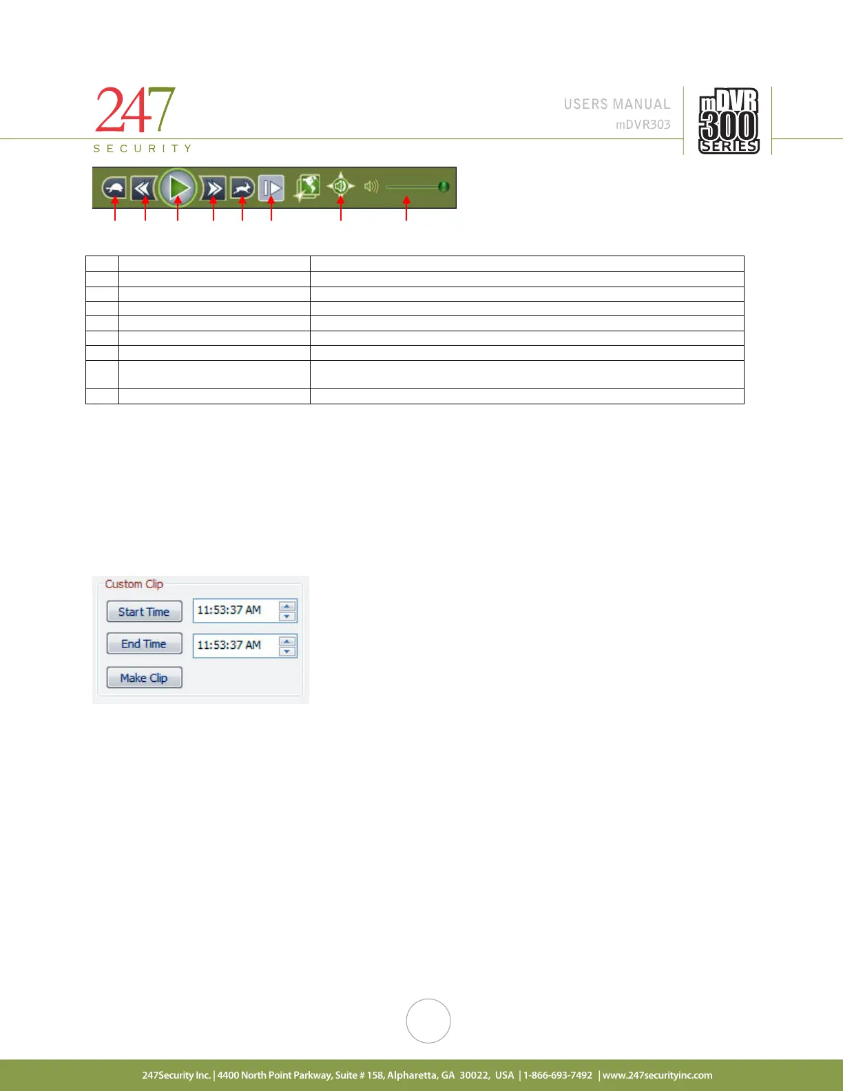 “Custom Clip” menu allows user to create a video file with custom start and end times. User can move the