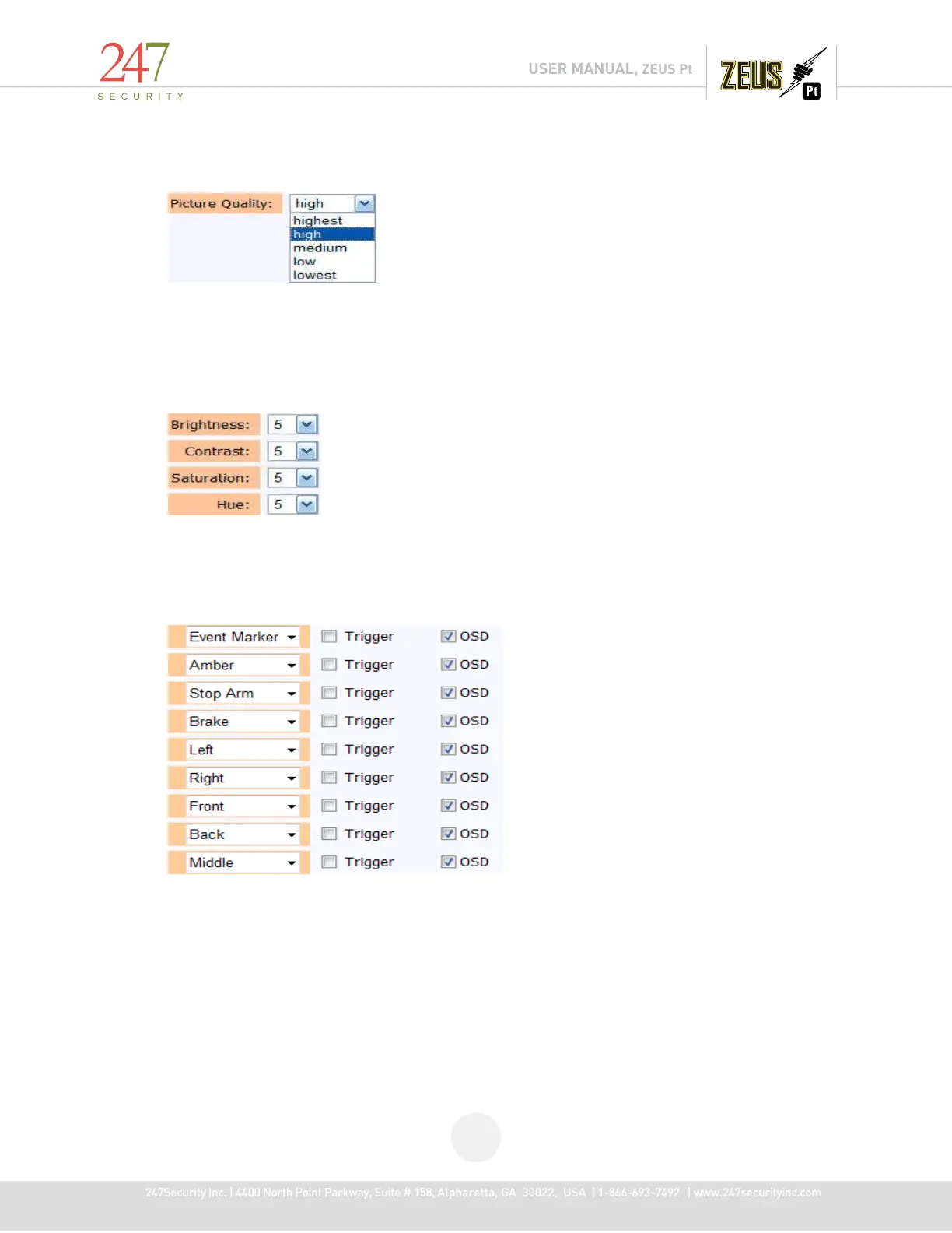 Each camera input can be individually adjusted for Brightness, Contrast, Hue and Saturation to