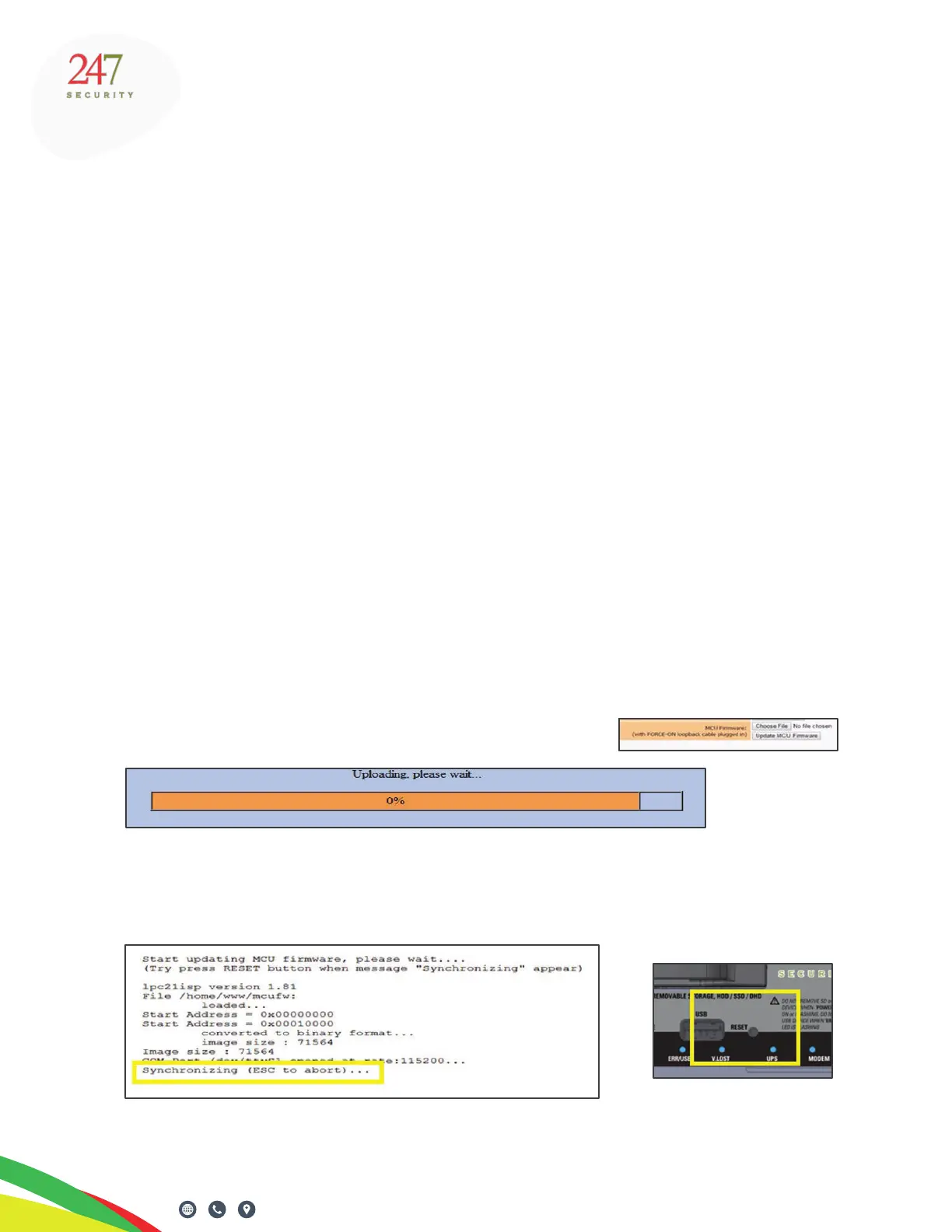 f. When “Synchronizing (ESC to abort)…” displays, immediately press the RESET button on