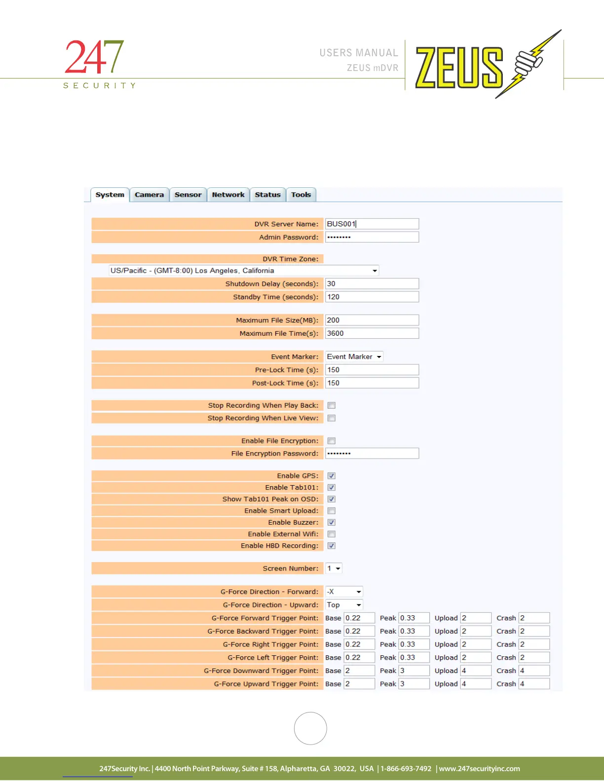 The system configuration menu is where you configure general parameters such as the name of the DVR,