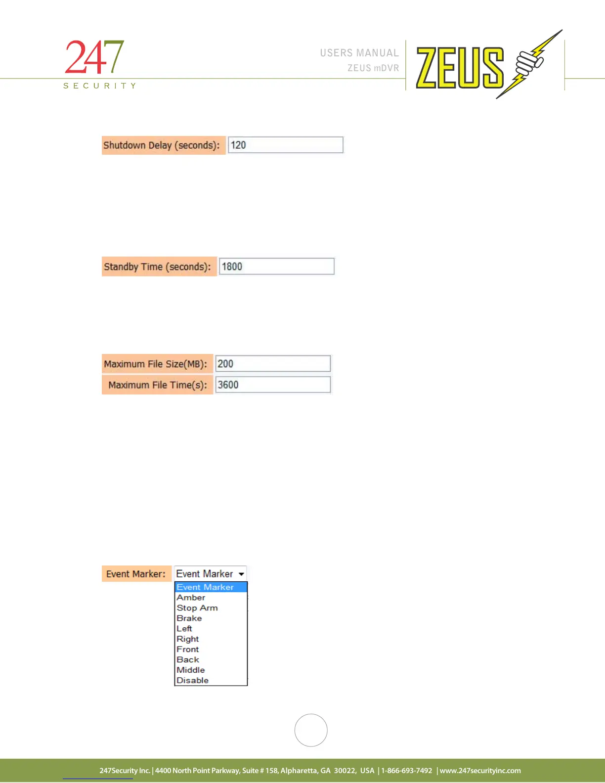 The Shutdown Delay parameter is used to control how long you want to keep the ZEUS recording after
