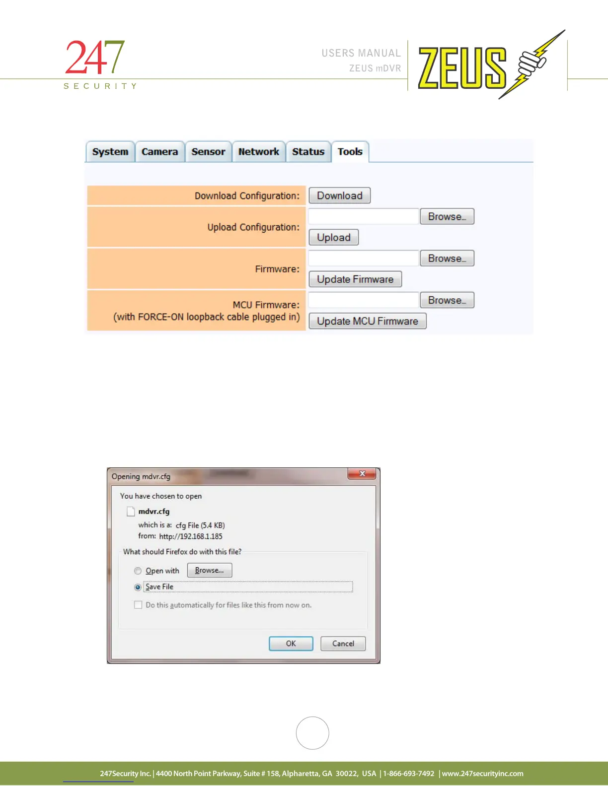 This tab will allow the user to back up the DVR configuration as well as update the firmware. There may be