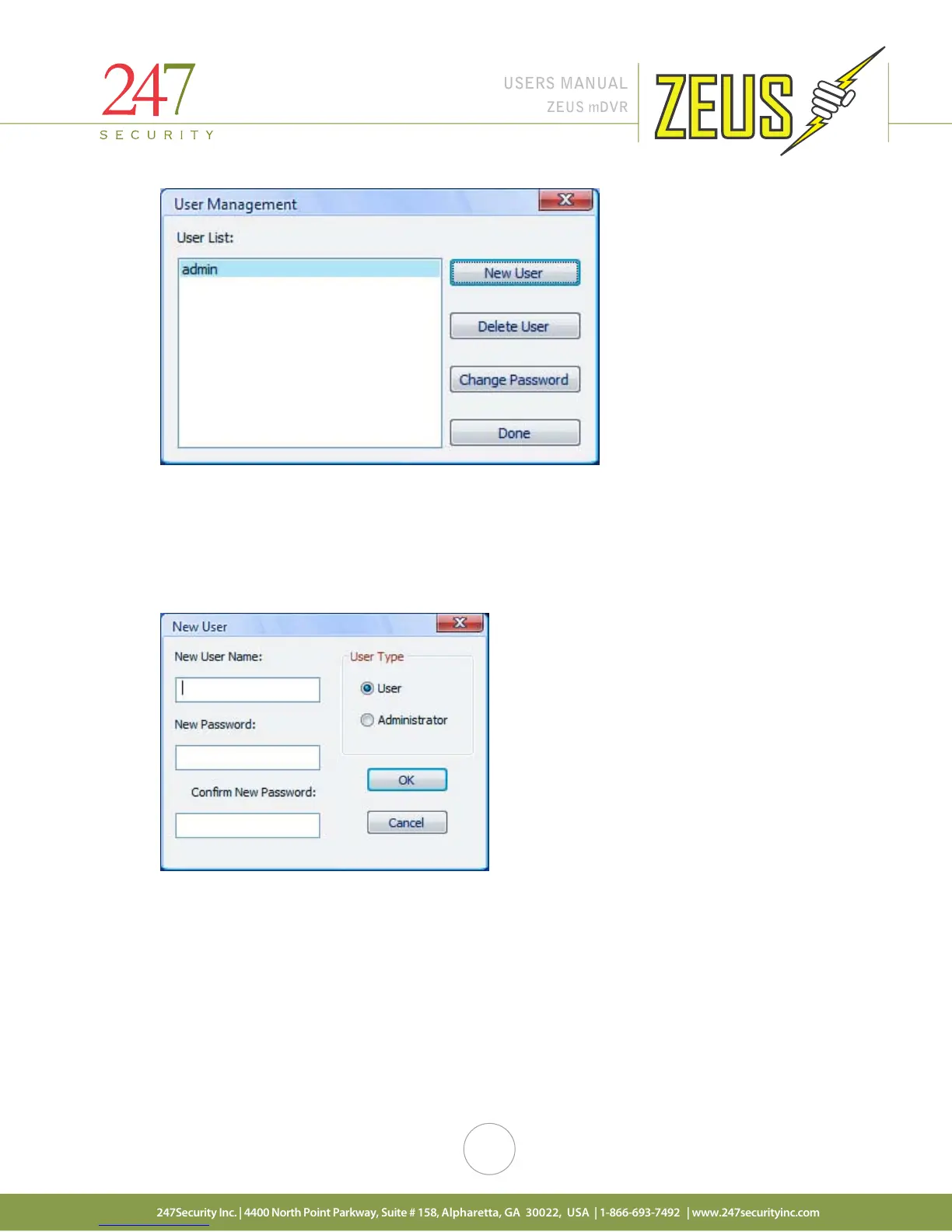 type to create the new user. Only Administrator users can add or delete users. The default Administrator user
