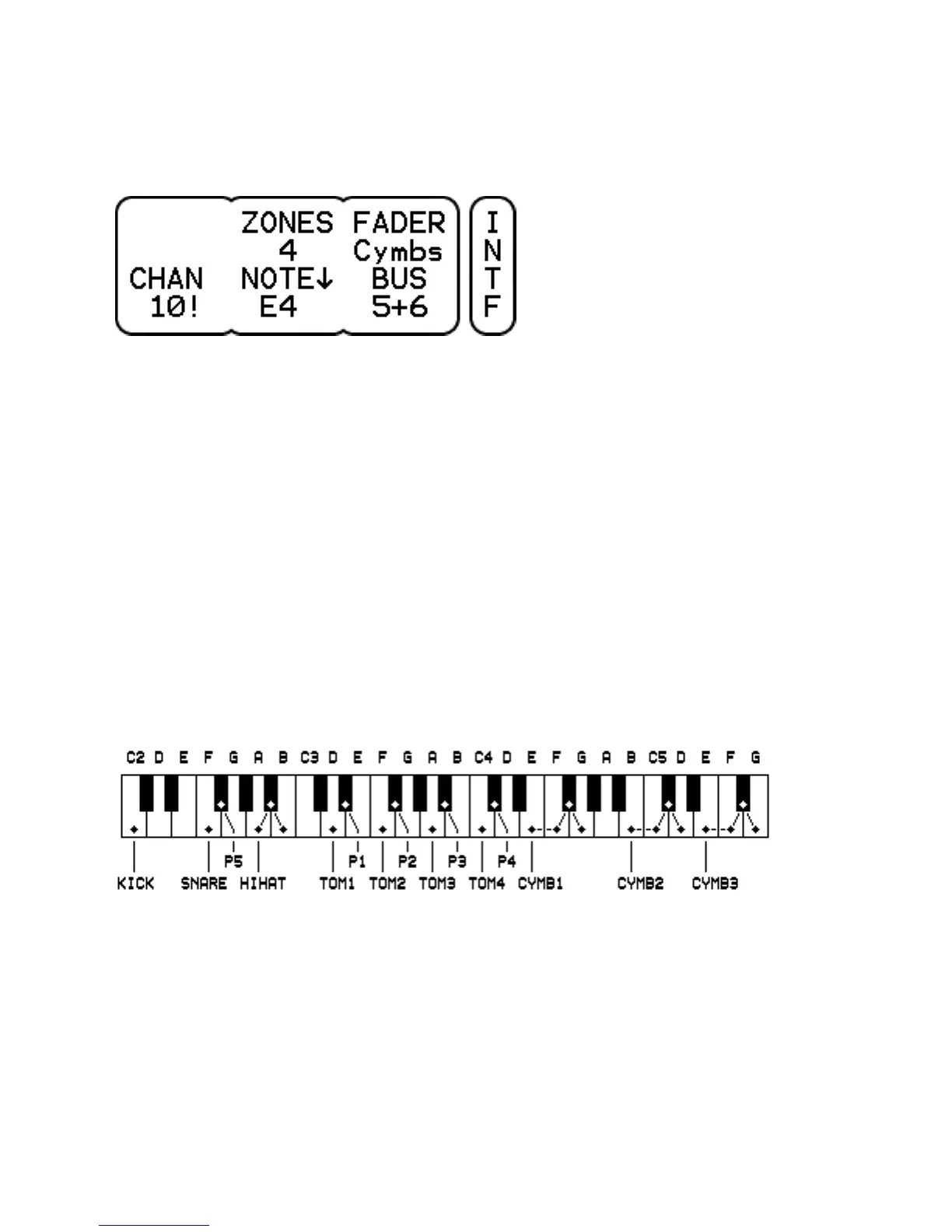 percussion channels selected with MORE plus TOMx or SNARE). This