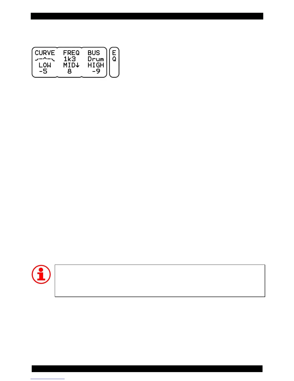 CURVE Shows you a graphical view of the EQ settings made. Pressing the left DATA button