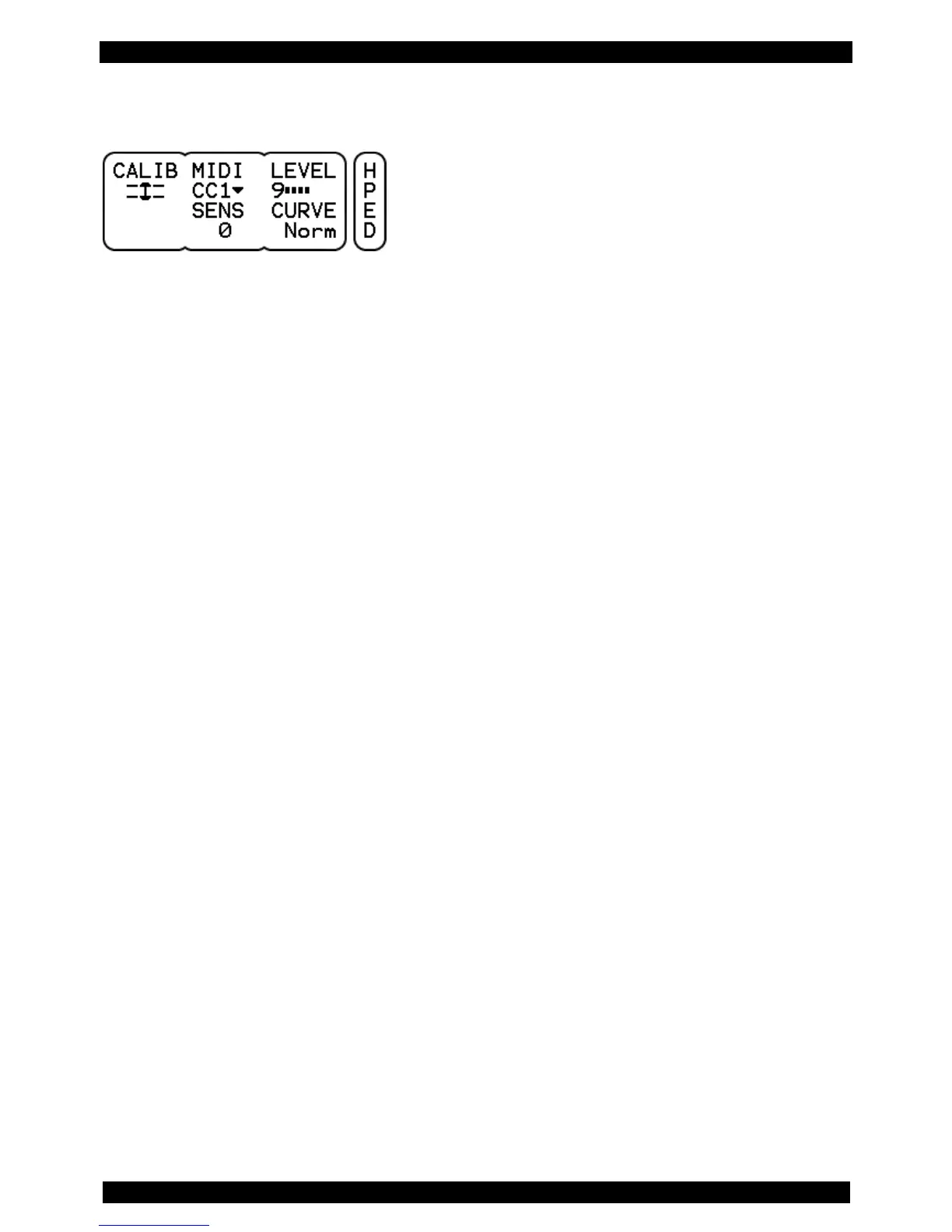 CALIB On this menu page you can calibrate the hihat, i.e. adjust it to your playing. Because of