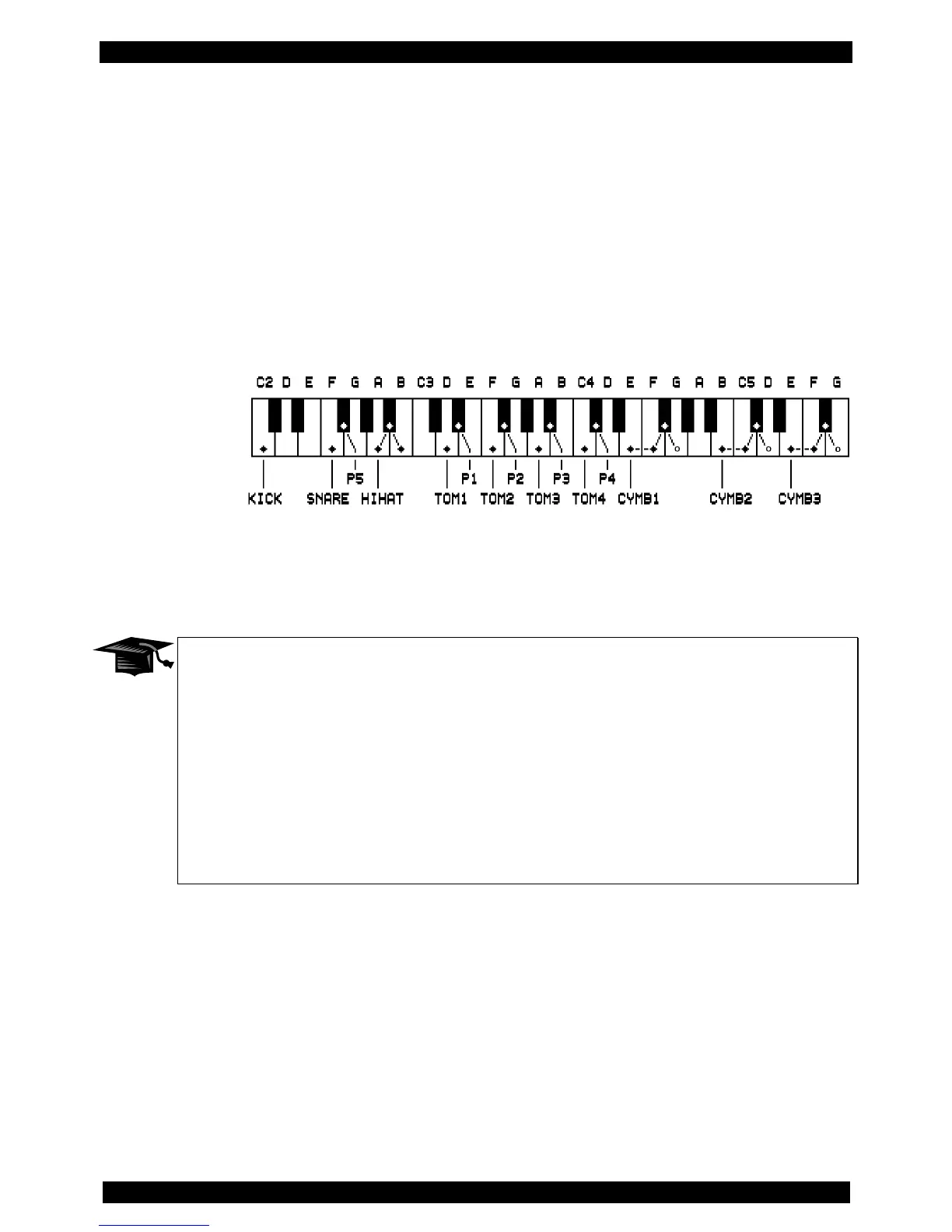 A cymbal stroke at the zones 1 (Bell), 4 (Bow) or 8 (Edge) generates a NOTE ON and a