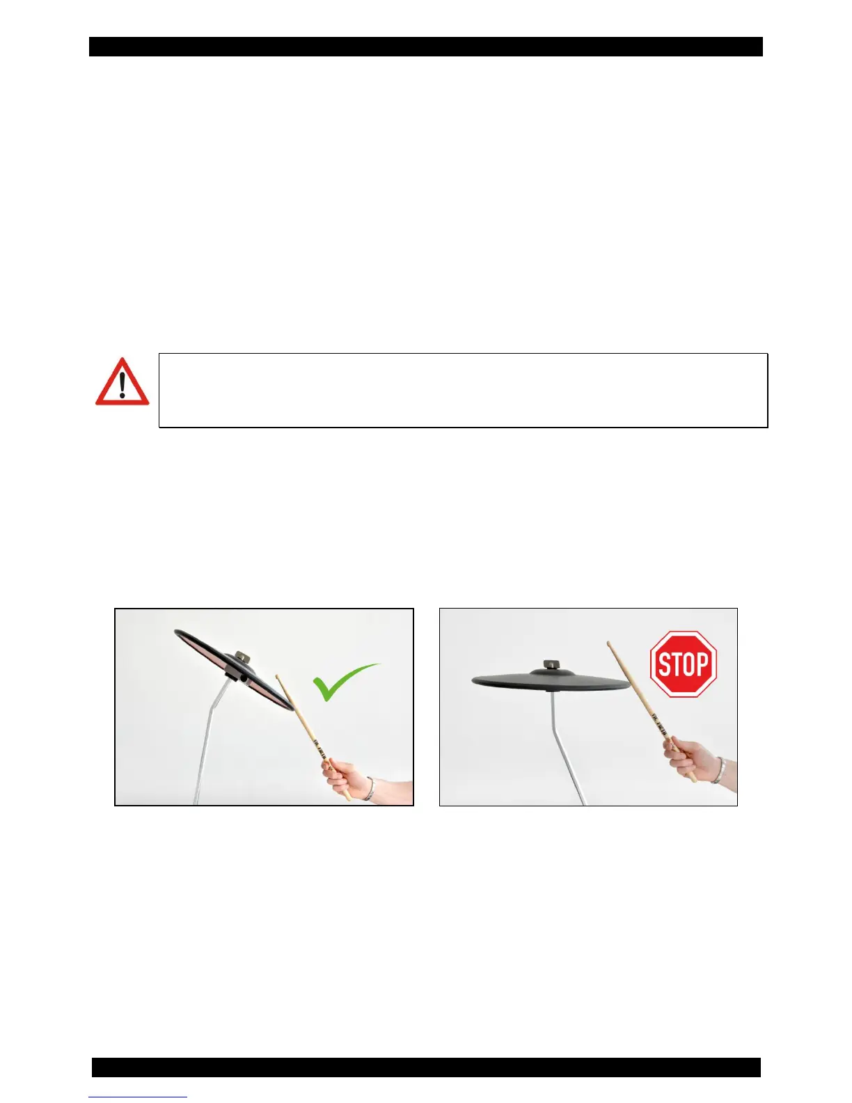 Especially the cymbal setup is of great importance. Never mount the cymbals horizontally – this may
