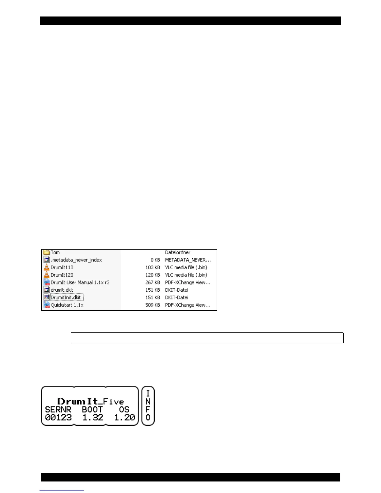 newer version. In the example below, the system recognizes the file DrumIt120.bin (OS 1.20) as the