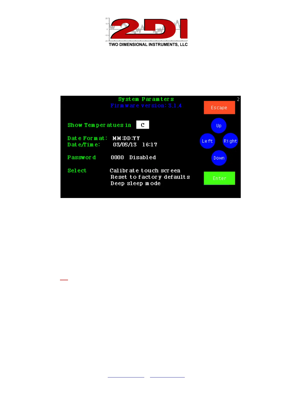 2. Touch ‘Up’ or 'Down' to select C° or F° and touch ‘Enter’.