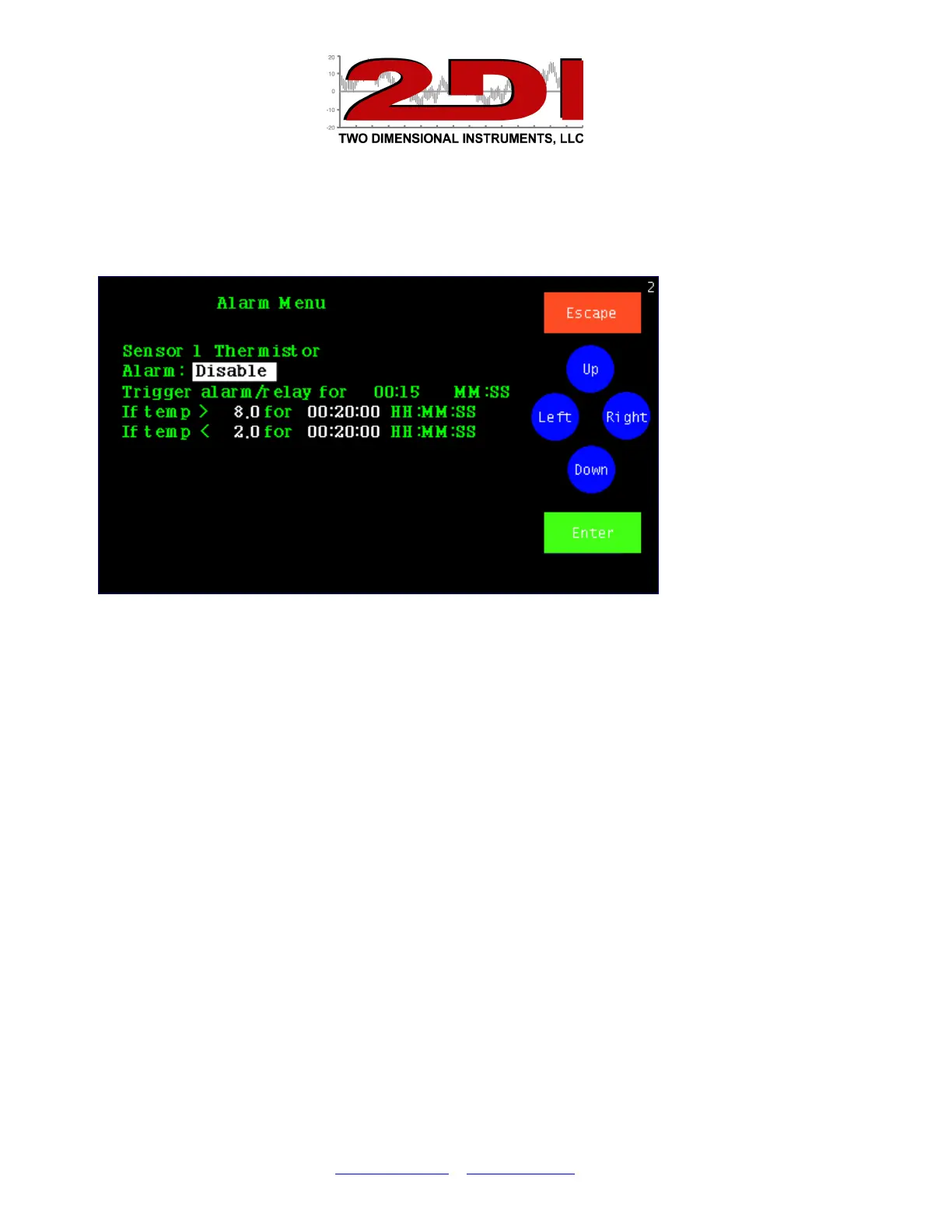 9. Scroll in the upper alarm temperature limit and delay time and then the lower alarm