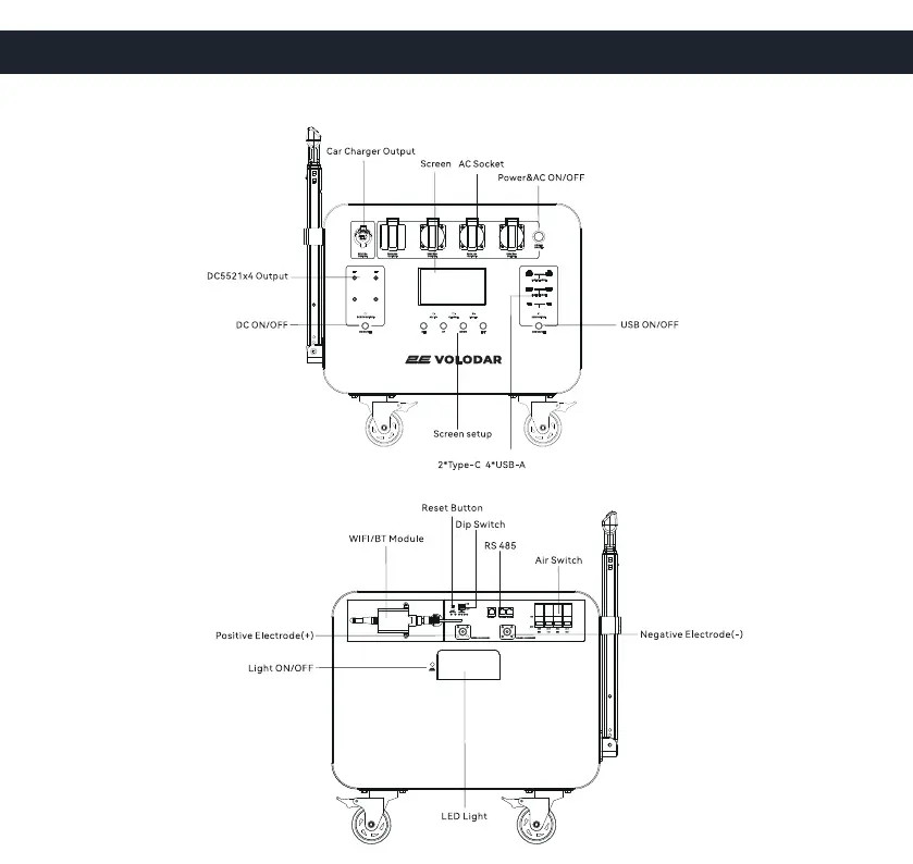 2E VOLODAR - Product Component Identification; Front View Component Identification; Back View Component Identification