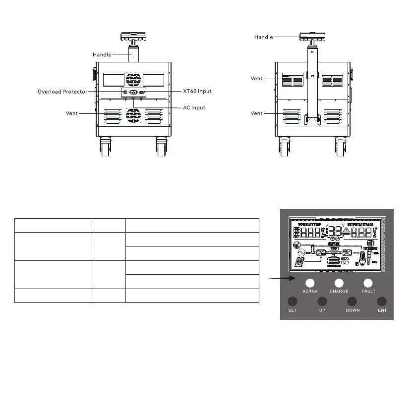 2E VOLODAR - Product Views and Display Features; Side View Component Identification; Indicator Lights Explained