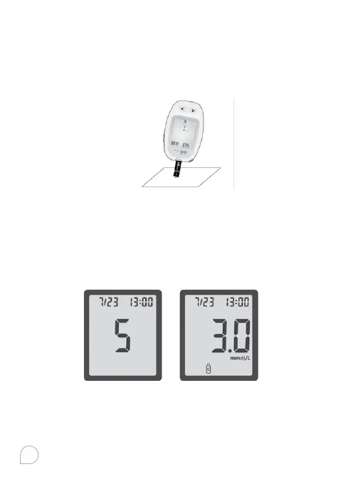6. Testni listič držite v kapljici, dokler ne zaslišite zvočnega