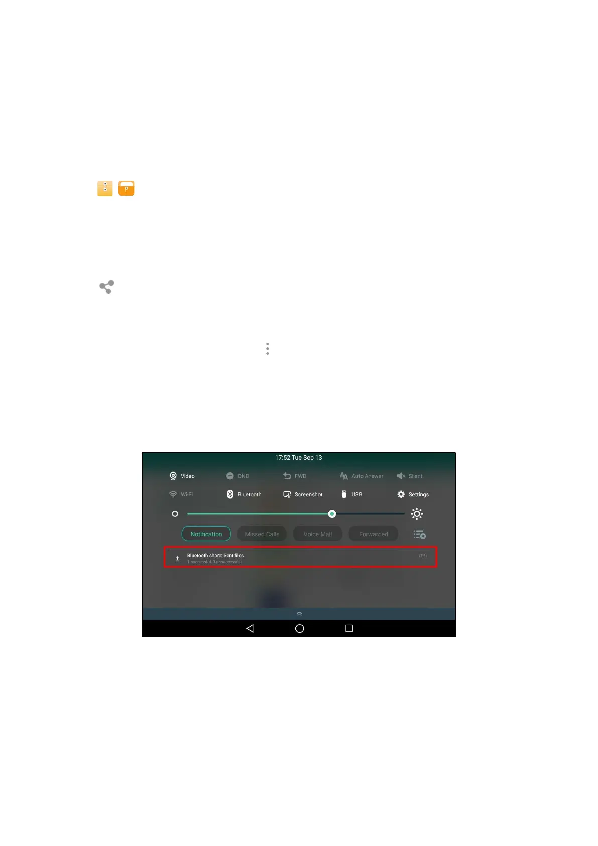 The phone screen will prompt “Sending n file to “XXX”” (n represents the number of the files that are being