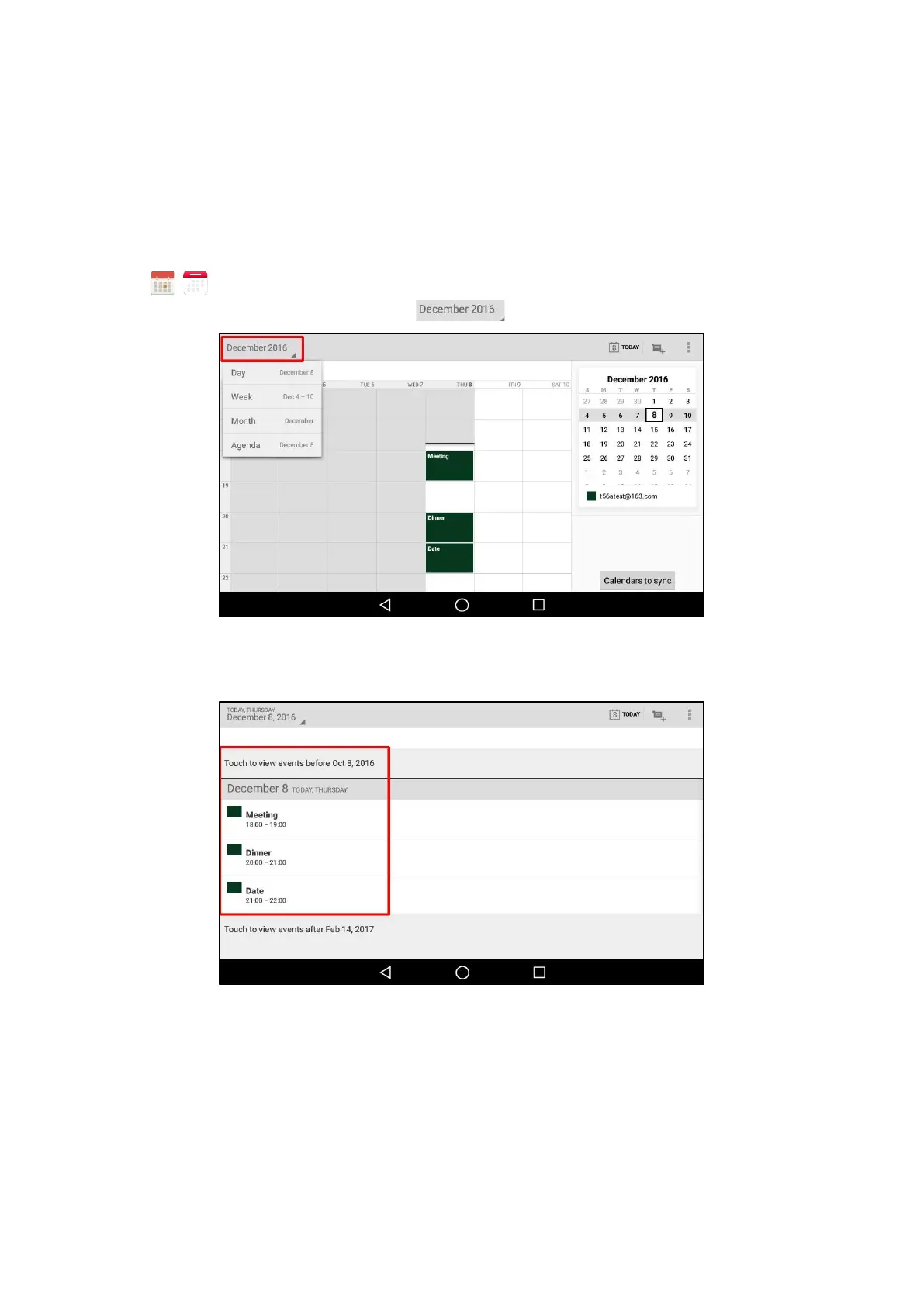 In the agenda view, the events you have added are displayed as a list. You can tap Touch to view events