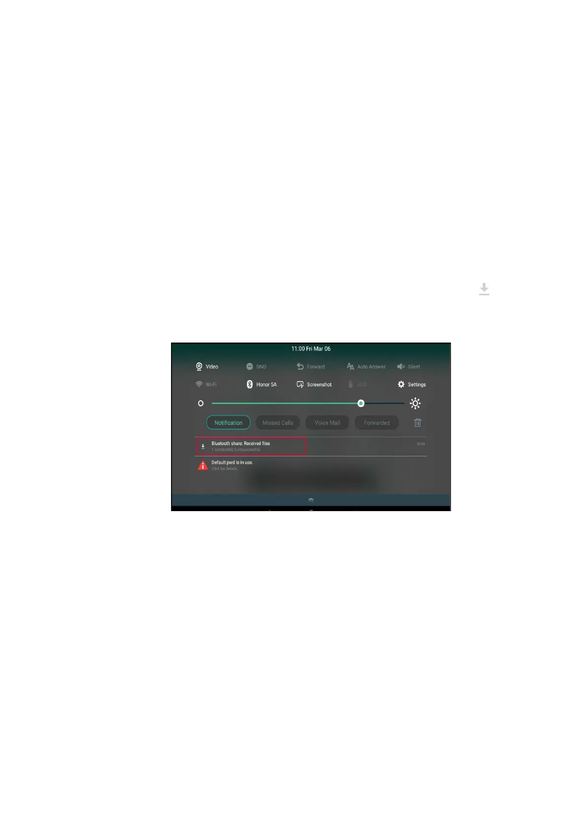 The phone prompts “The file will be received. Check progress in the Notification panel.”The icon