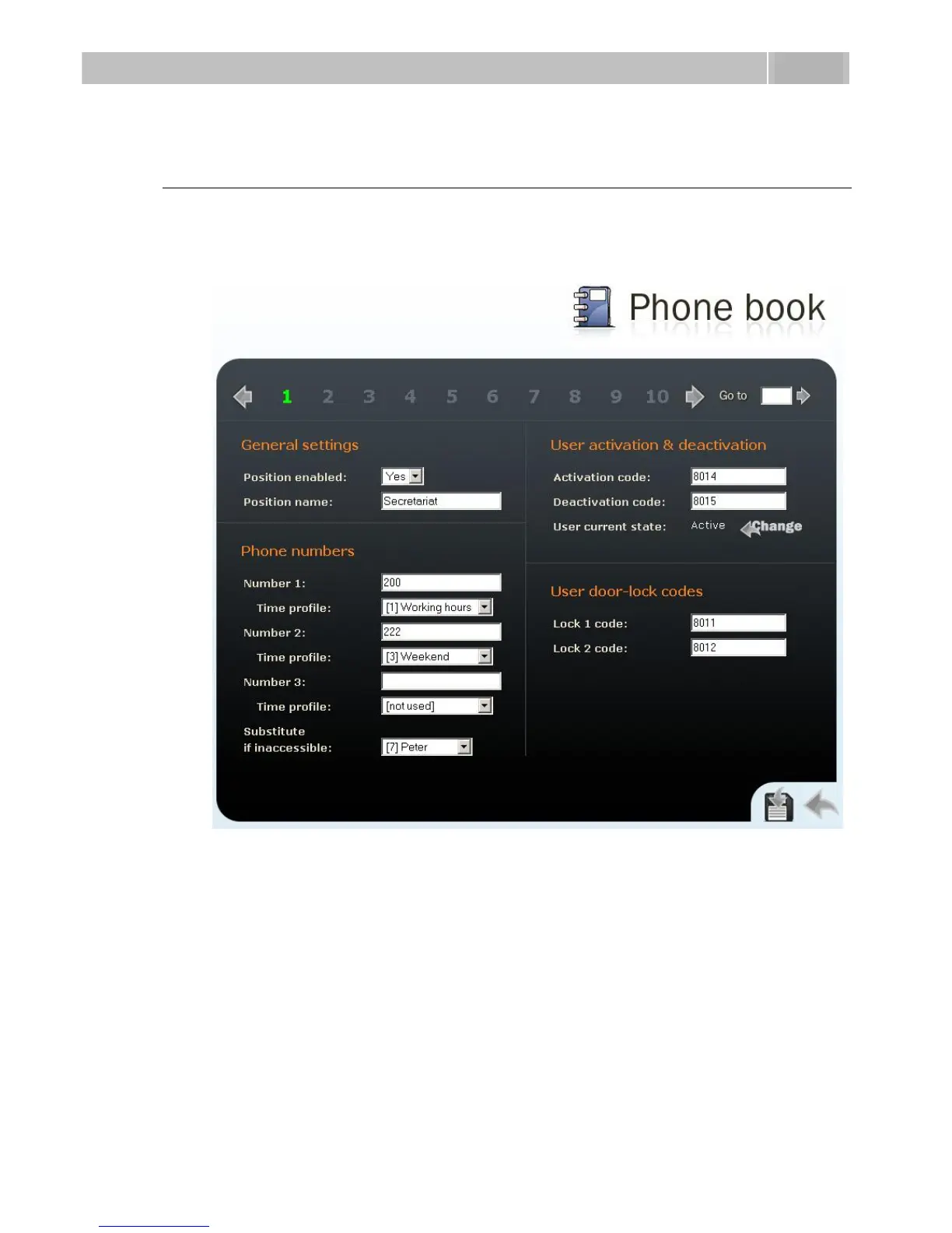 To set the telephone directory, use the Basic settings –> Telephone directory tag. The