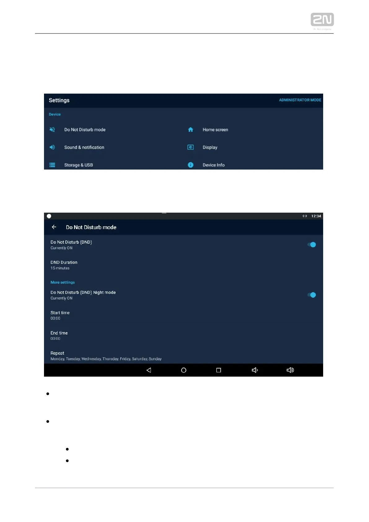 – set the end of the DND Night mode time validity.End time