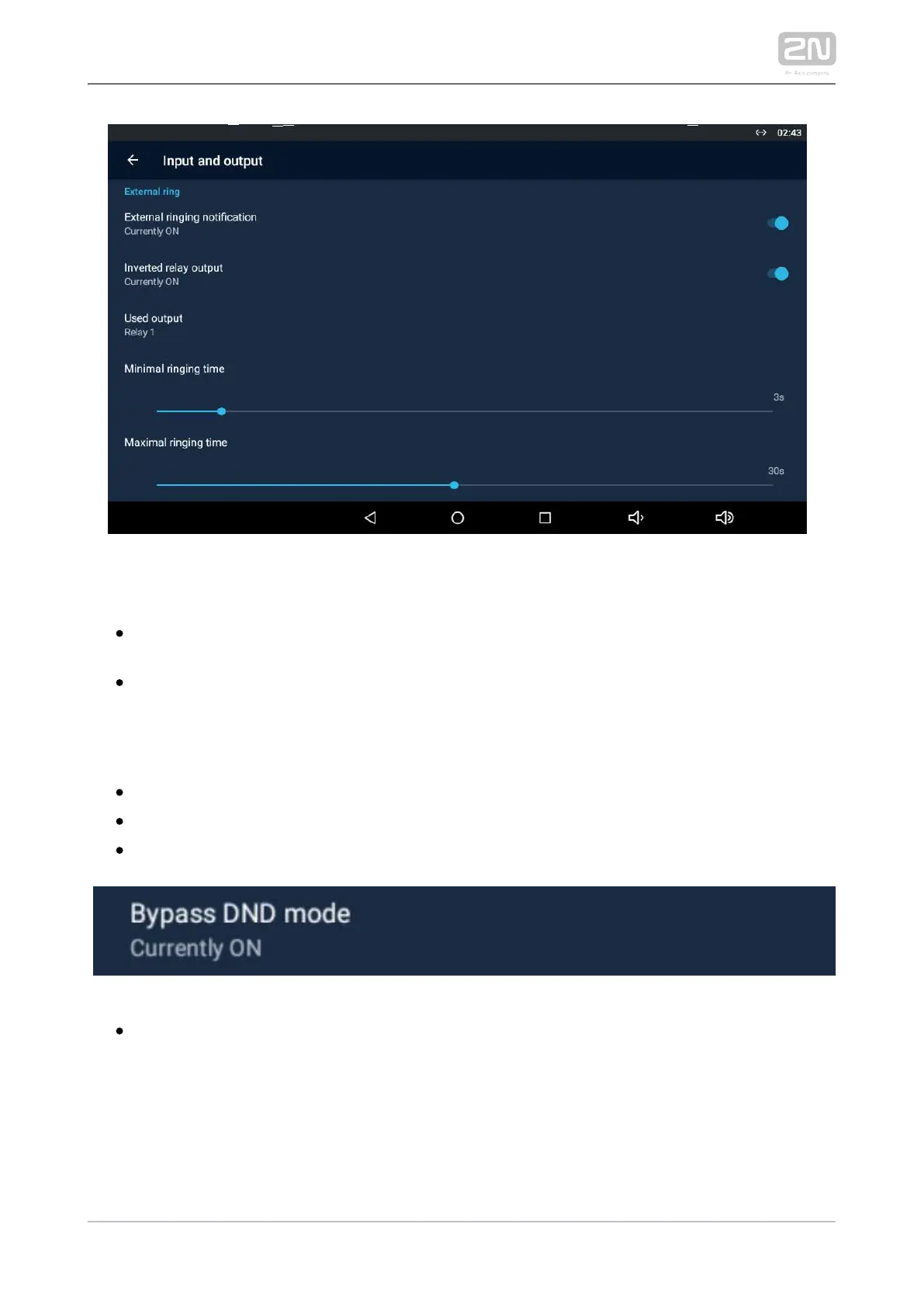 – enable the relay activation. If enabled, the External ringing notification