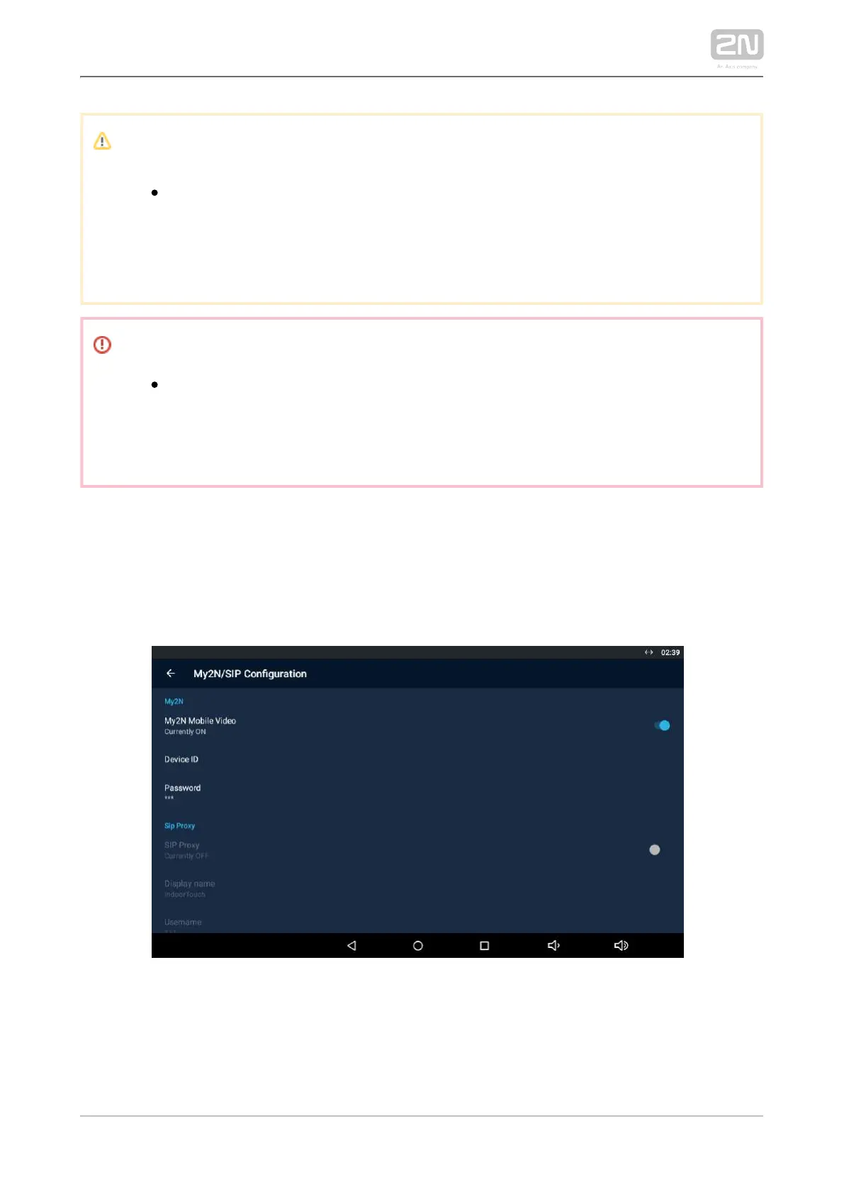 Refer to 4.2.3 Calls via 2N Mobile Video