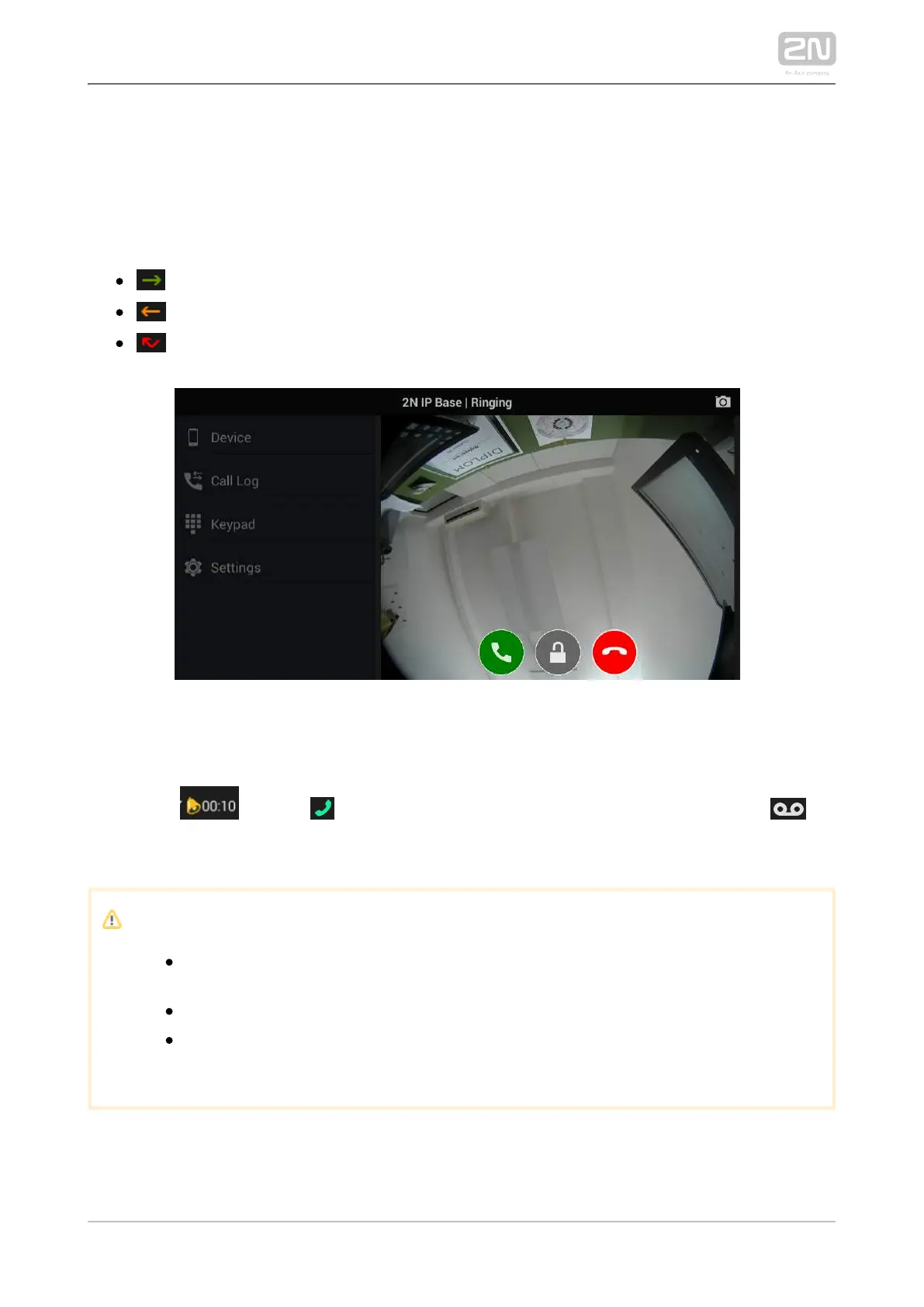 The Call Log section displays the records of outgoing/incoming calls. 2N IP Mobile