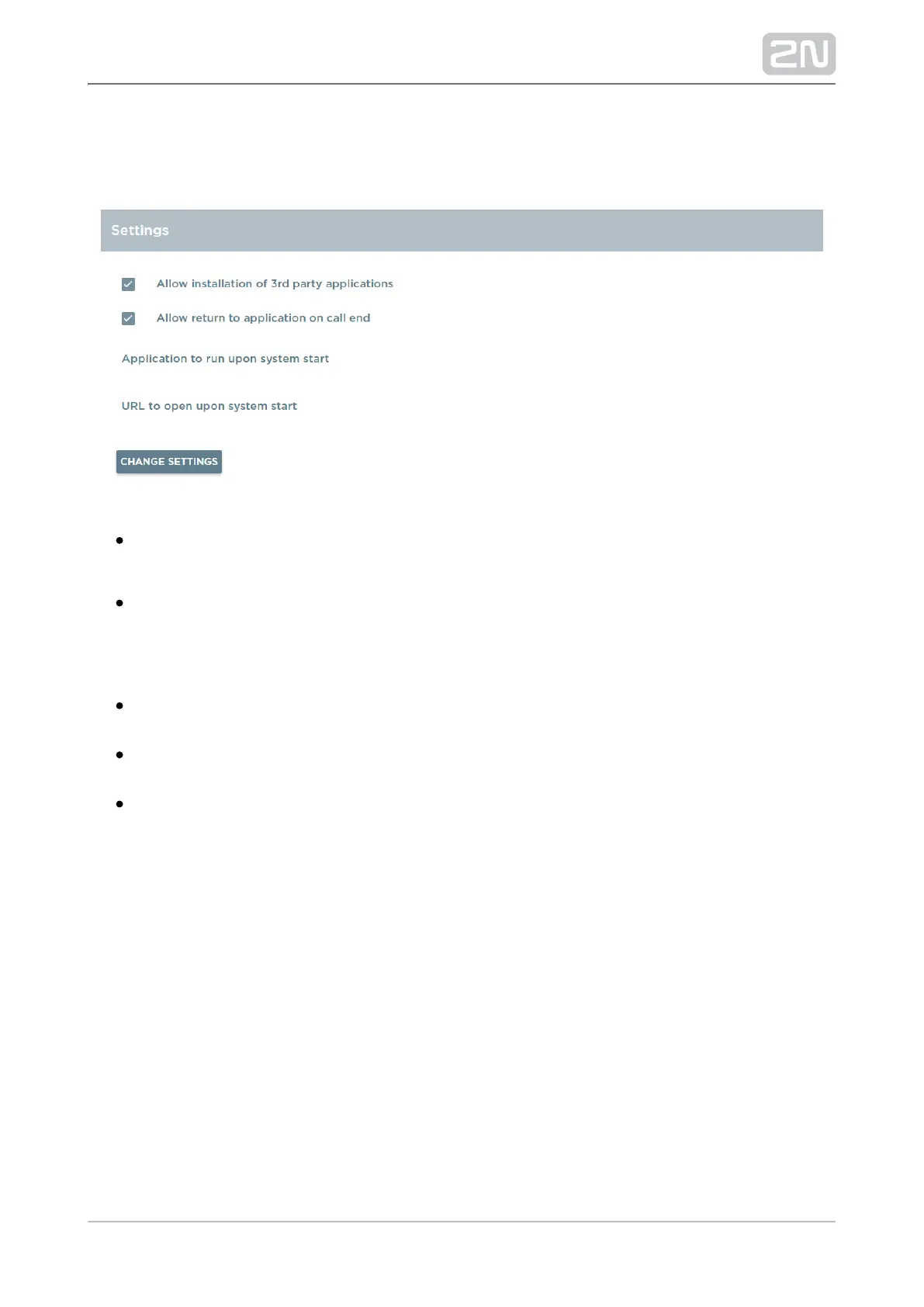 Allow return to application on call end – when a call comes while 2N Helios IP