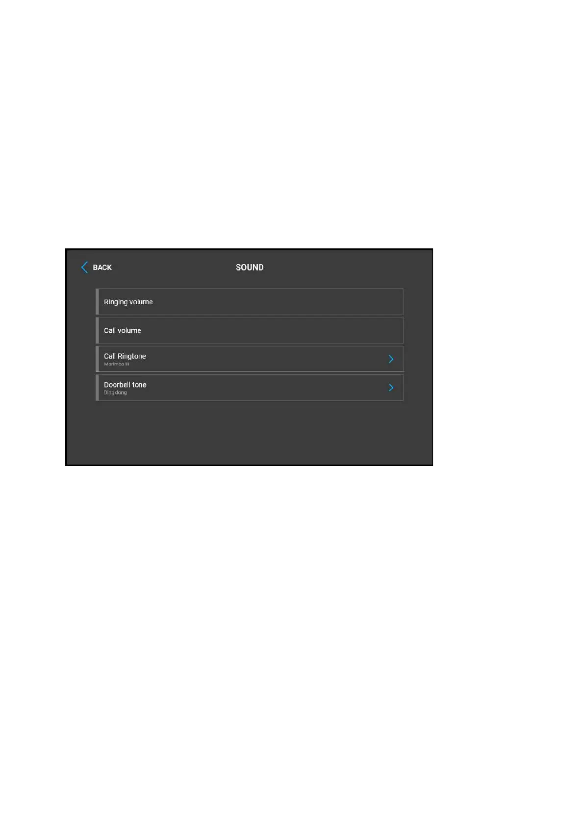 Doorbell tone – set the tone to be played when the doorbell is used.