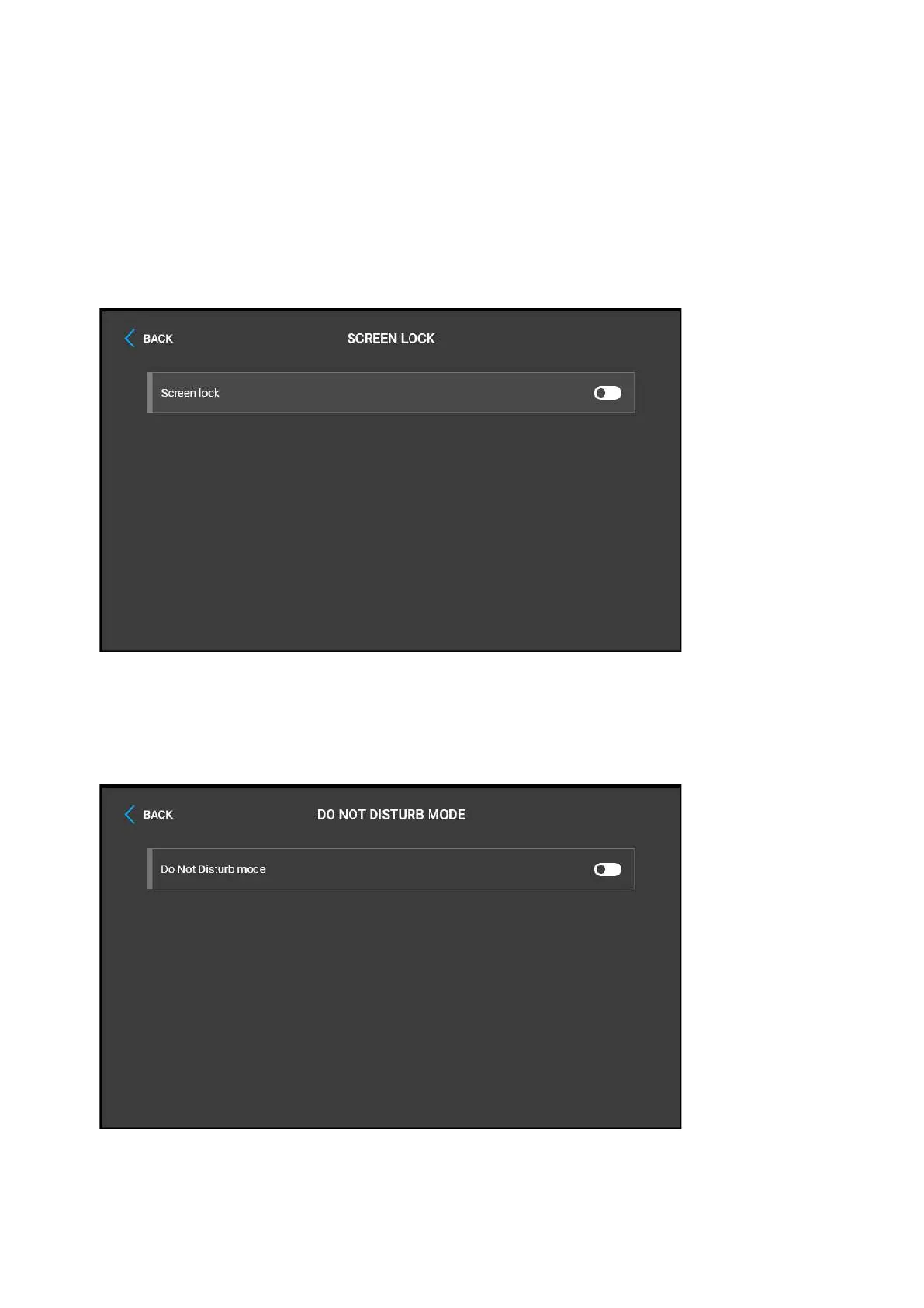 Screen lock – switch the screen lock or also the so-called parental lock on/off. Enter the