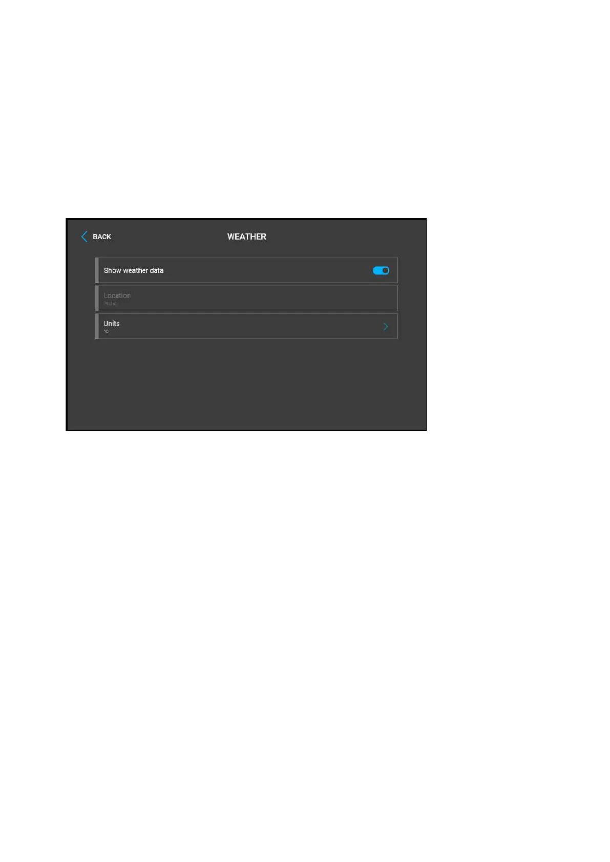 shortly to set the location in the Weather / Settings section, which will be displayed