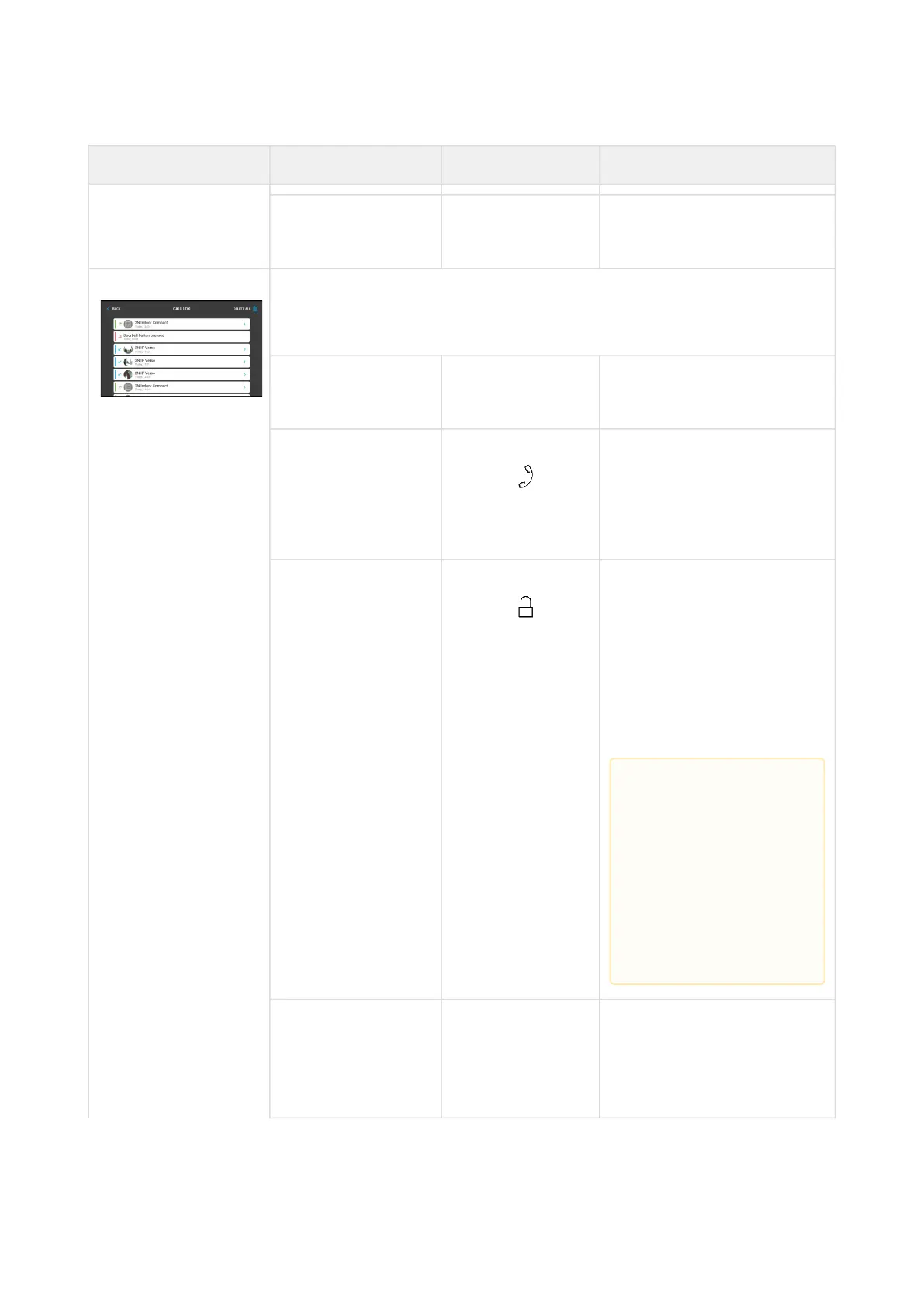 Access Logs The device displays a list of all accomplished calls including date,