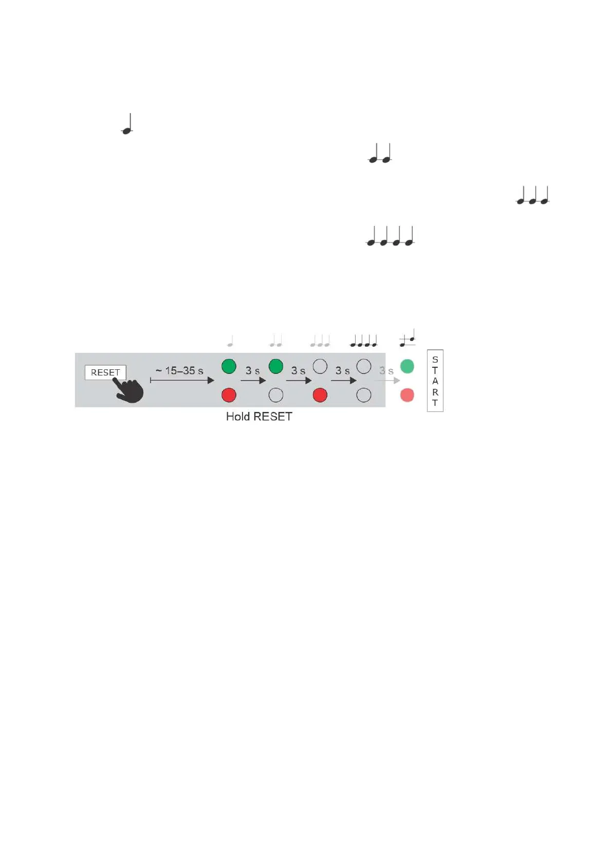 Wait until the red and green LEDs go on simultaneously and the acoustic signal can be