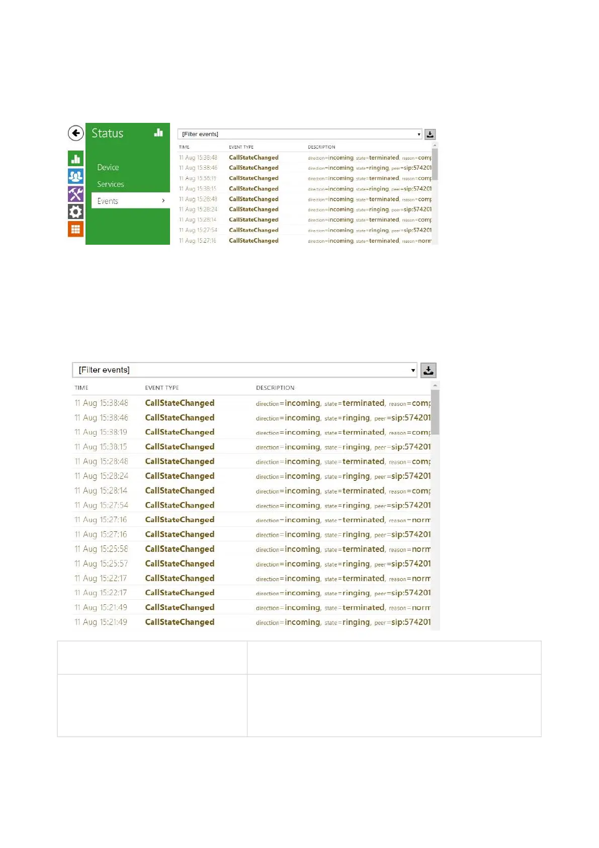 The tab displays the last 500 events captured by the device. Every event includes the capturing
