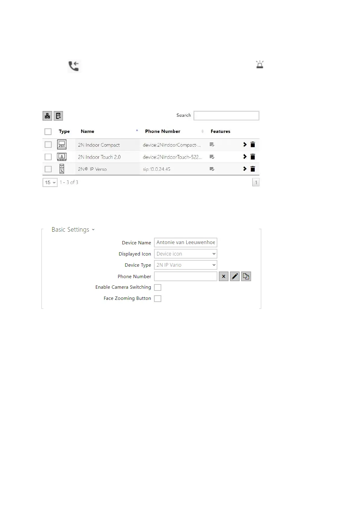 indicates the feature of the device to which the alarm call started with a the doorbell button
