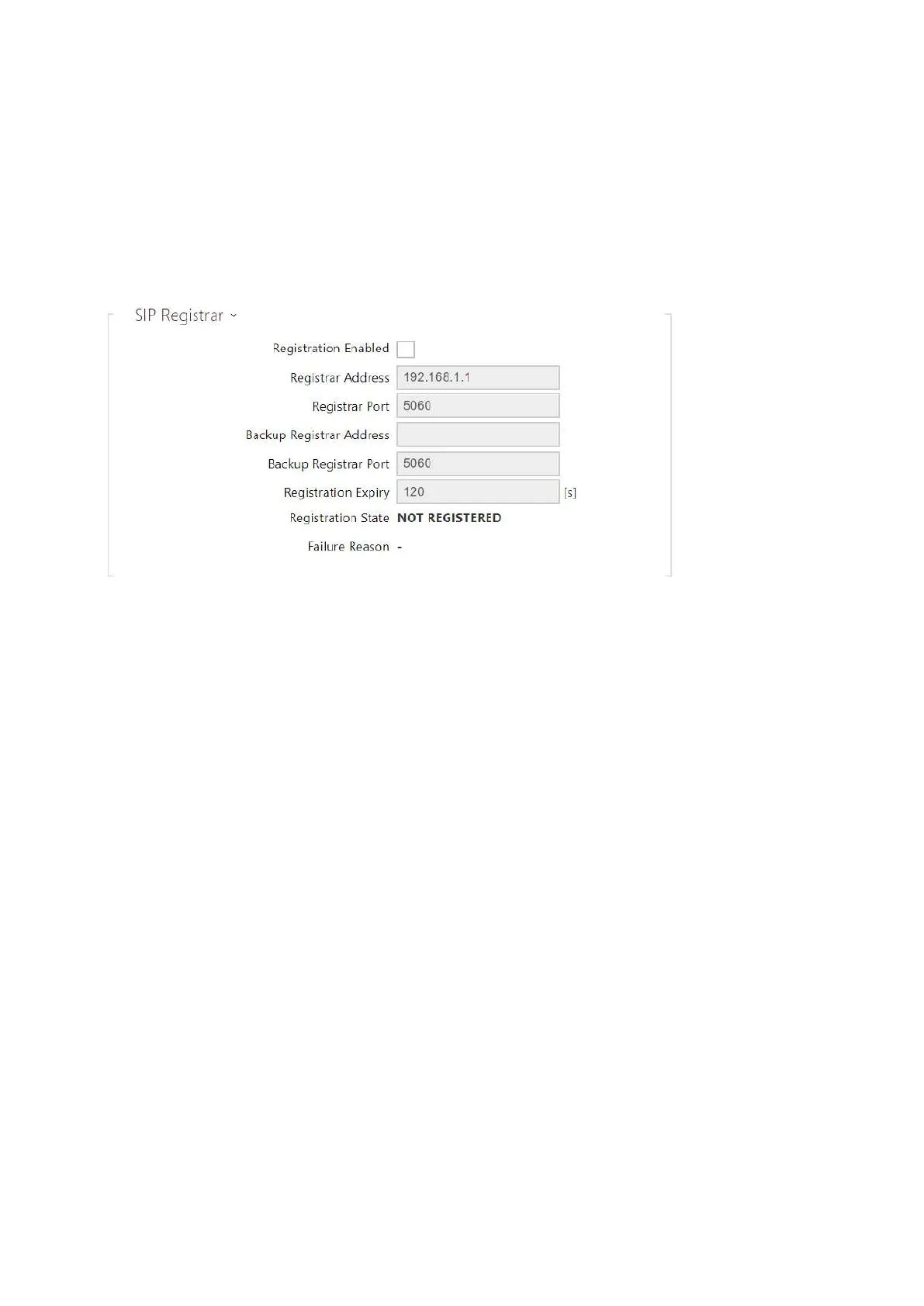 Failure Reason – display the reason for the last registration attempt failure: the registrar’s