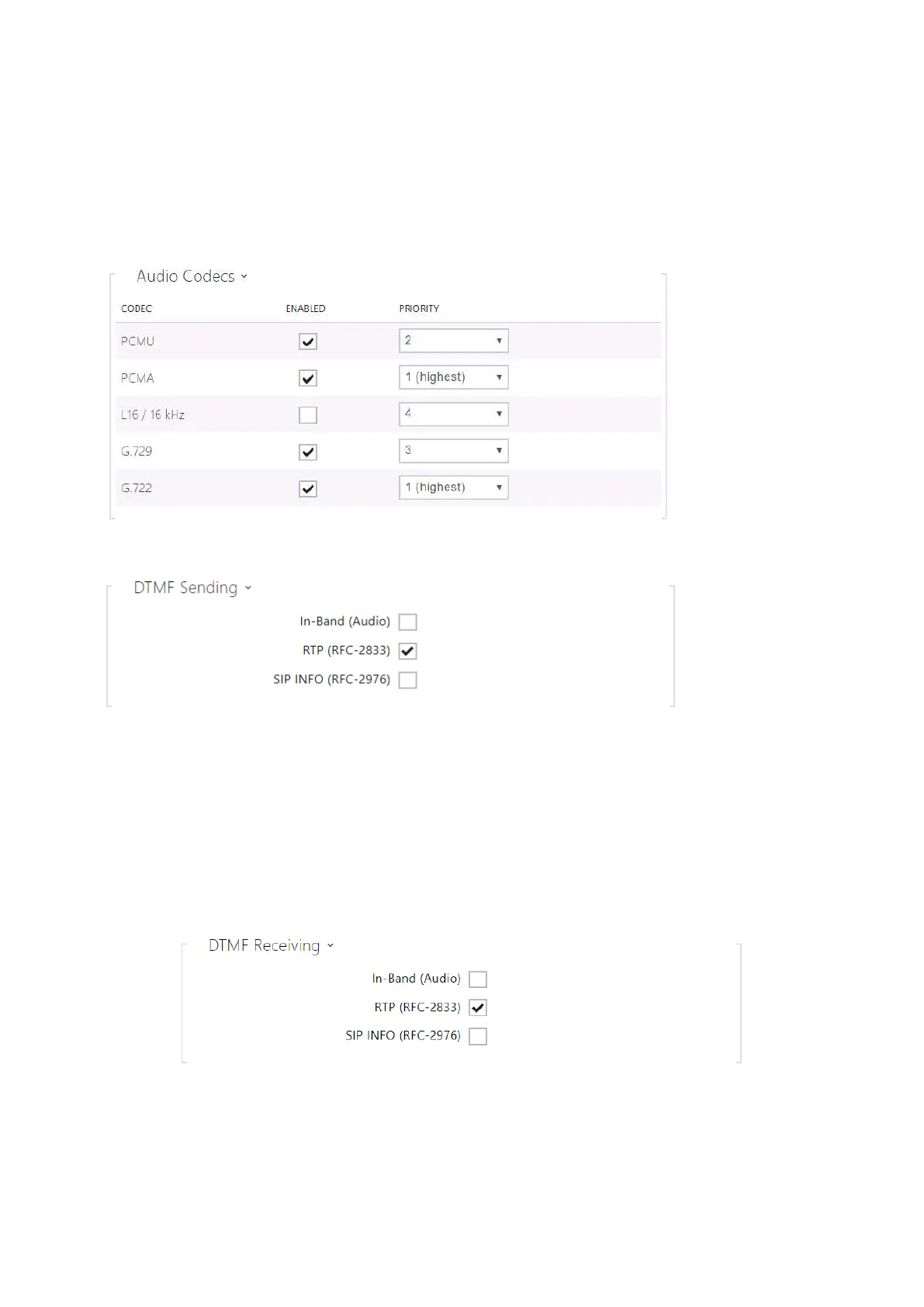 RTP (RFC-2833) – enable DTMF sending via the RTP according to RFC-2833.