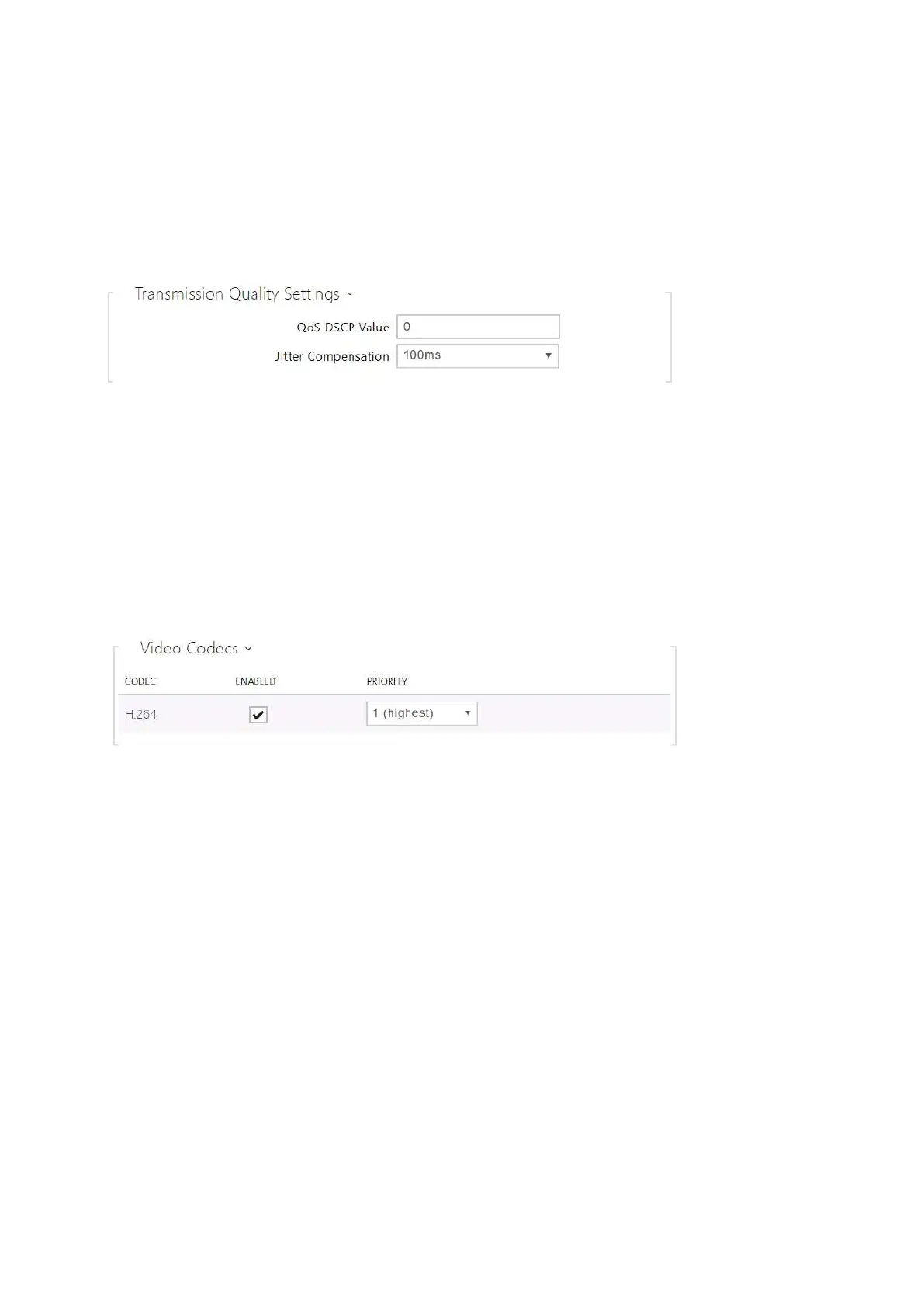 QoS DSCP Value – set the audio RTP packet priority in the network. The set value is sent in