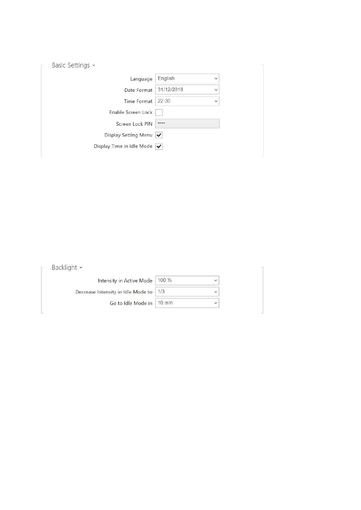 Intensity in Active Mode – set the backlight brightness level.Set the value as a