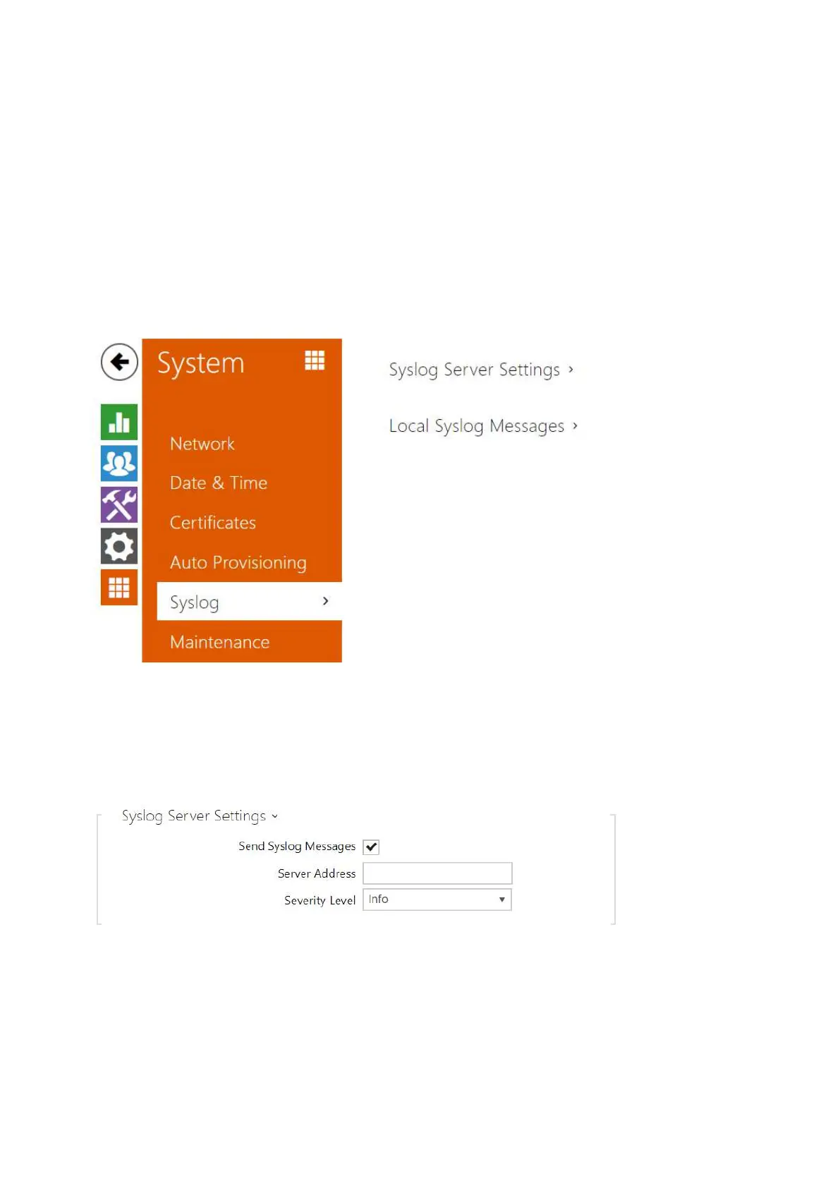 Send Syslog Messages – enable sending of syslog messages to the Syslog server. Make