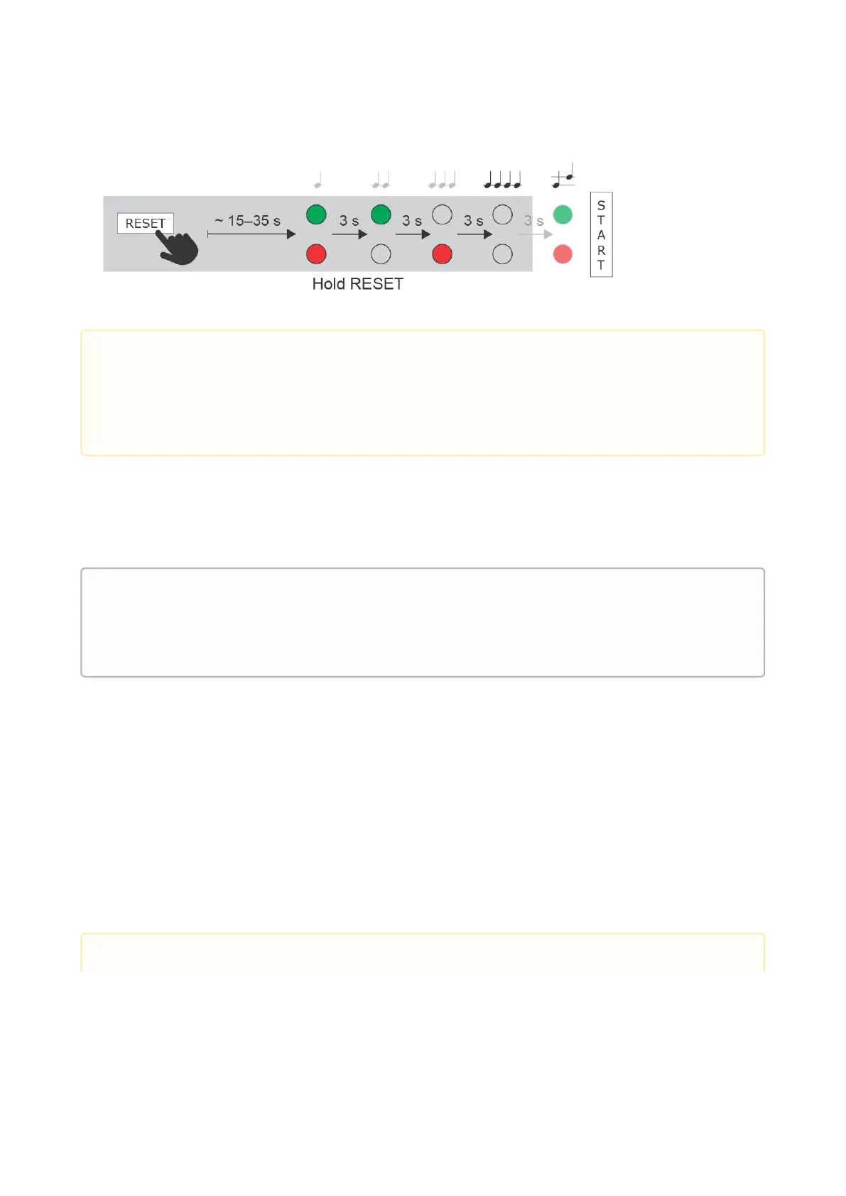 Press the RESET button shortly (< 1 s) to restart the system without changing